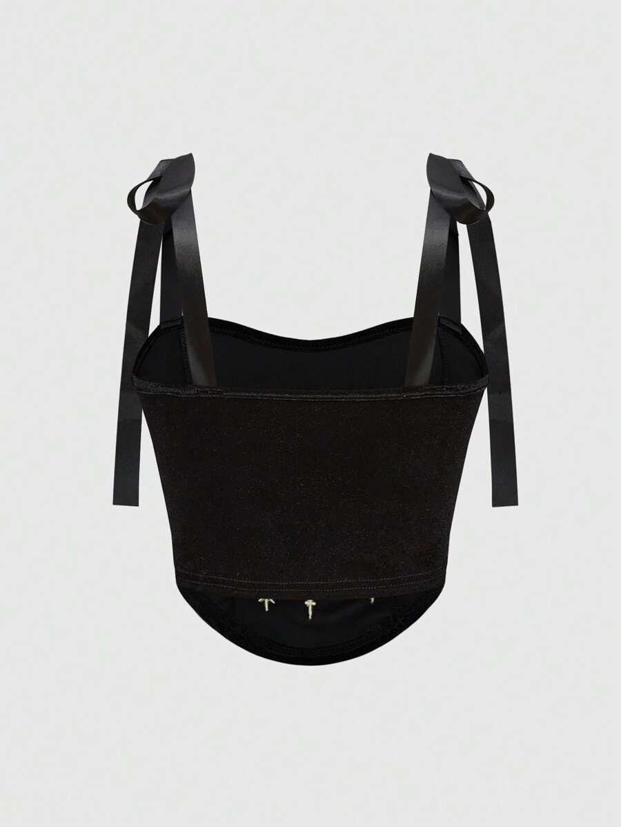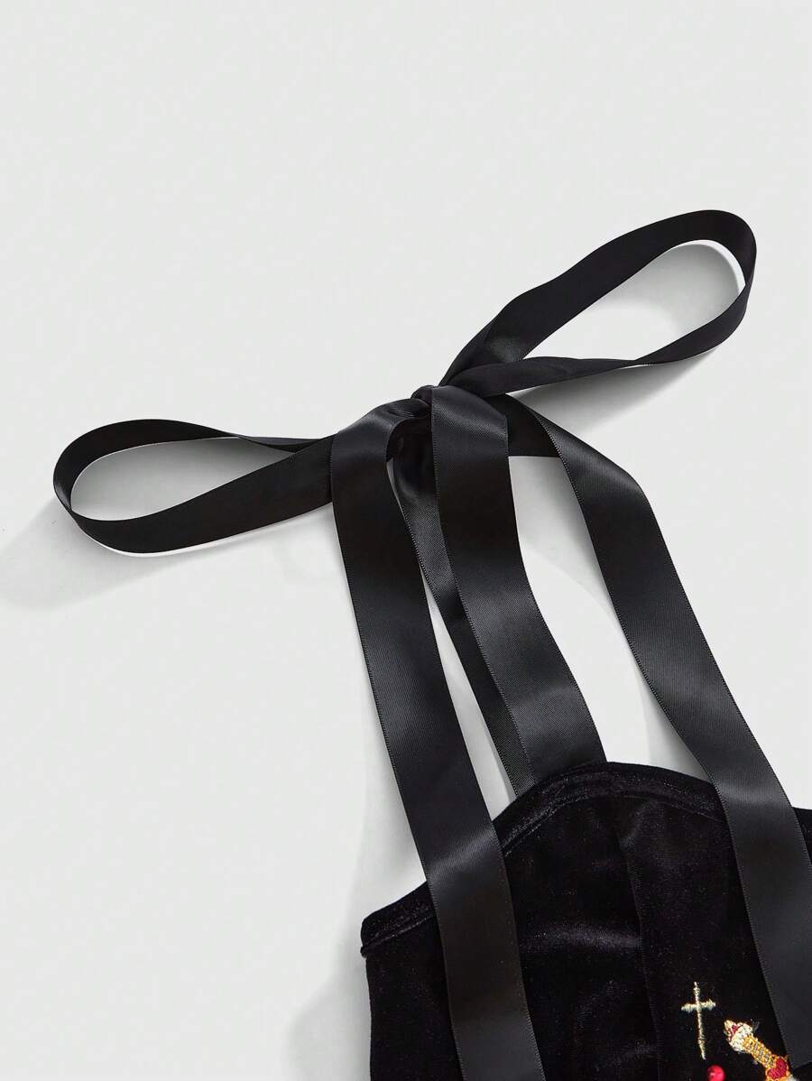 Goth Top corto con ata delantero de estilo gótico, bordado con corazón, con cristales de piedras preciosas en forma de lágrima y estrella