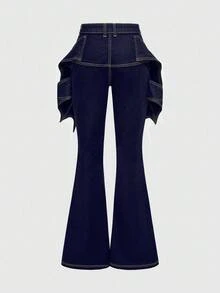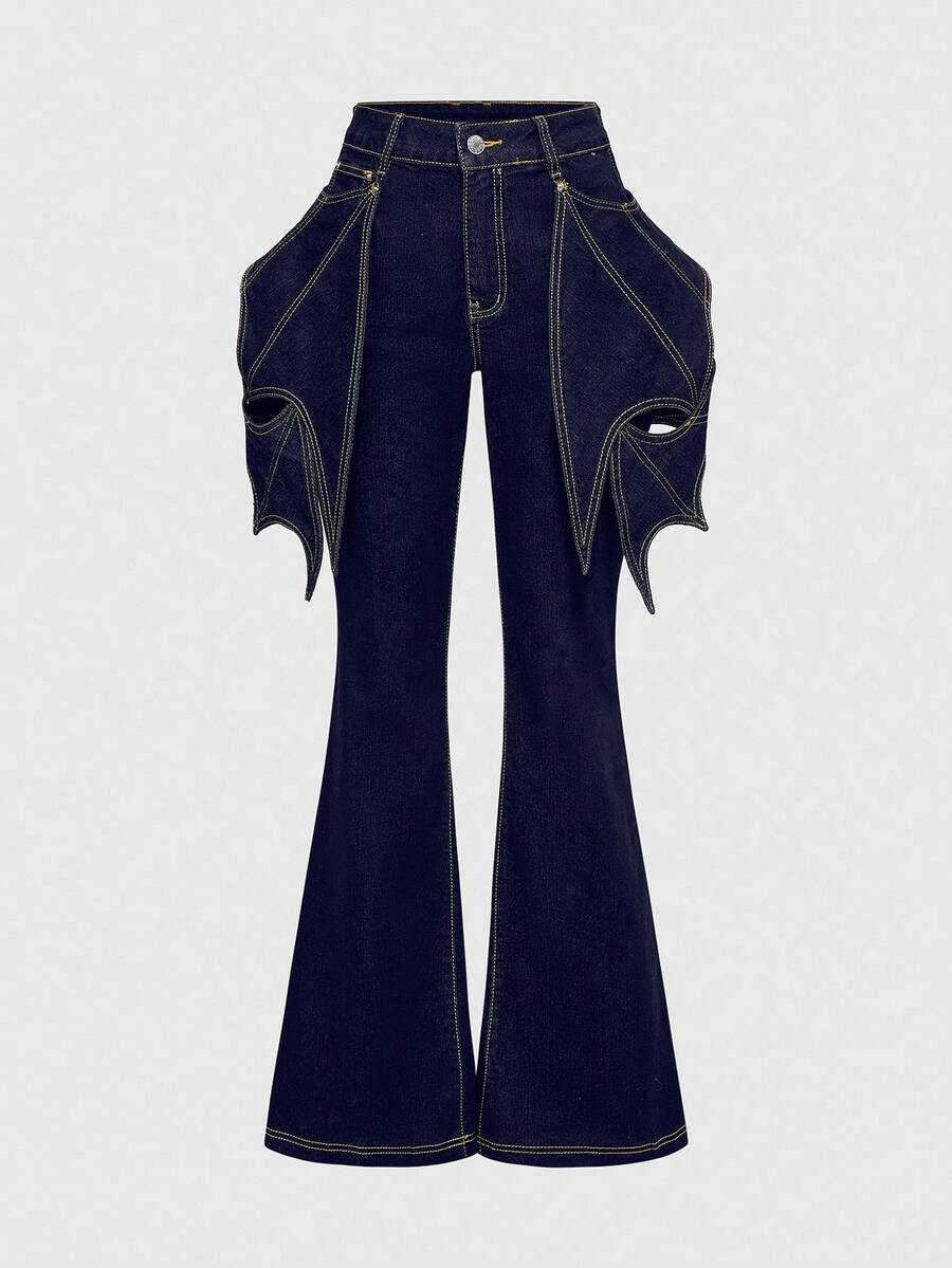 Goth Jeans acampanados de estilo gótico con diseño de alas de murciélago para mujeres