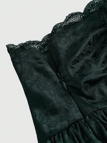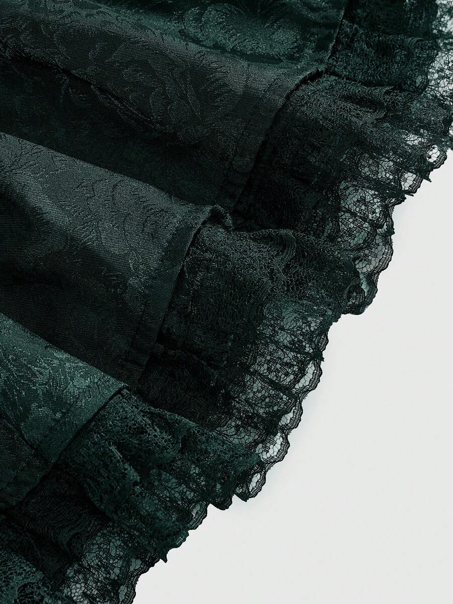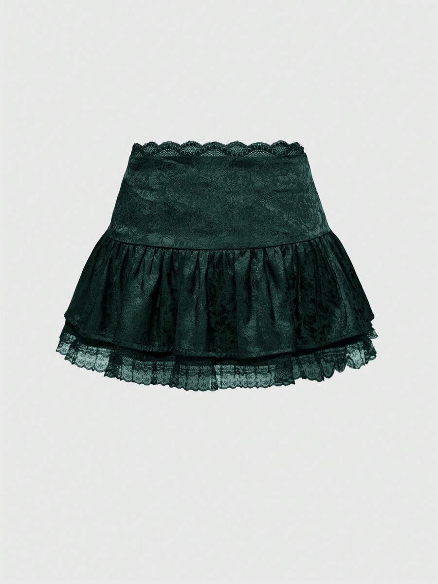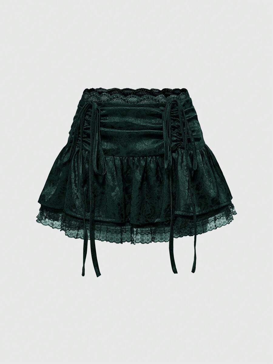 Goth Minifalda de mujer con pliegues en la cintura, adorno de encaje y estilo jacquard de satén en estilo gótico (con leggings incluidos), conjunto de ropa de verano