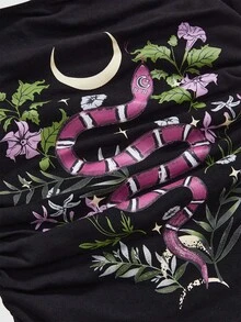 Goth Camiseta de tirantes de mujer con estampado de bruja, serpiente oscura, luna y flor, estilo gótico, Halloween