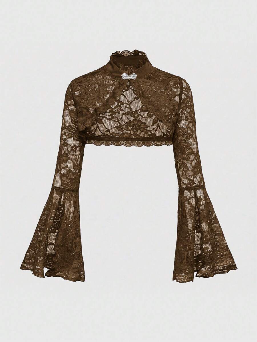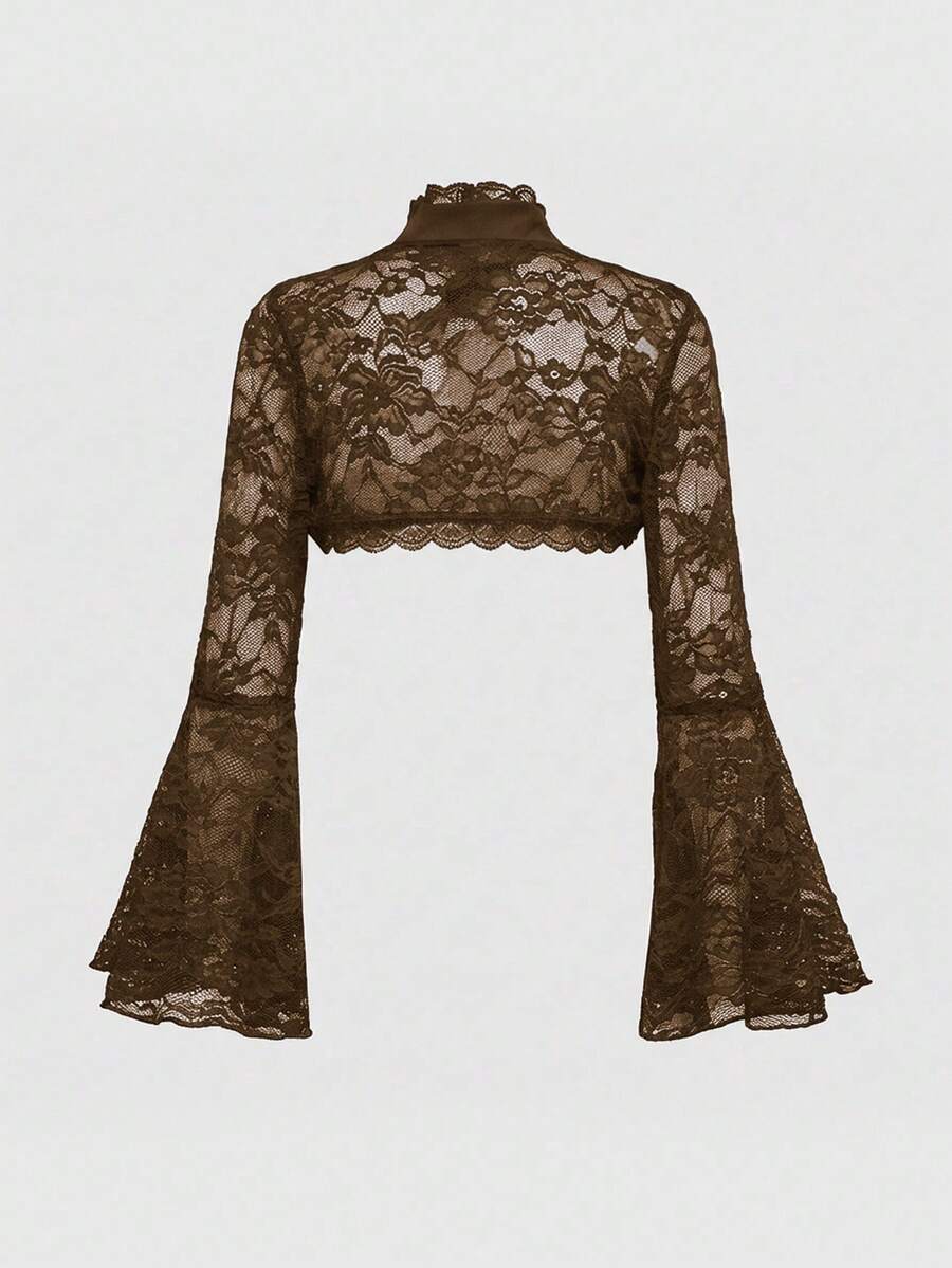 Goth Cárdigan de encaje con mangas abiertas y acampanadas, de estilo gótico y versátil para mujeres
