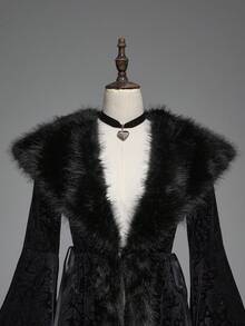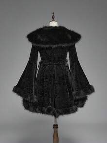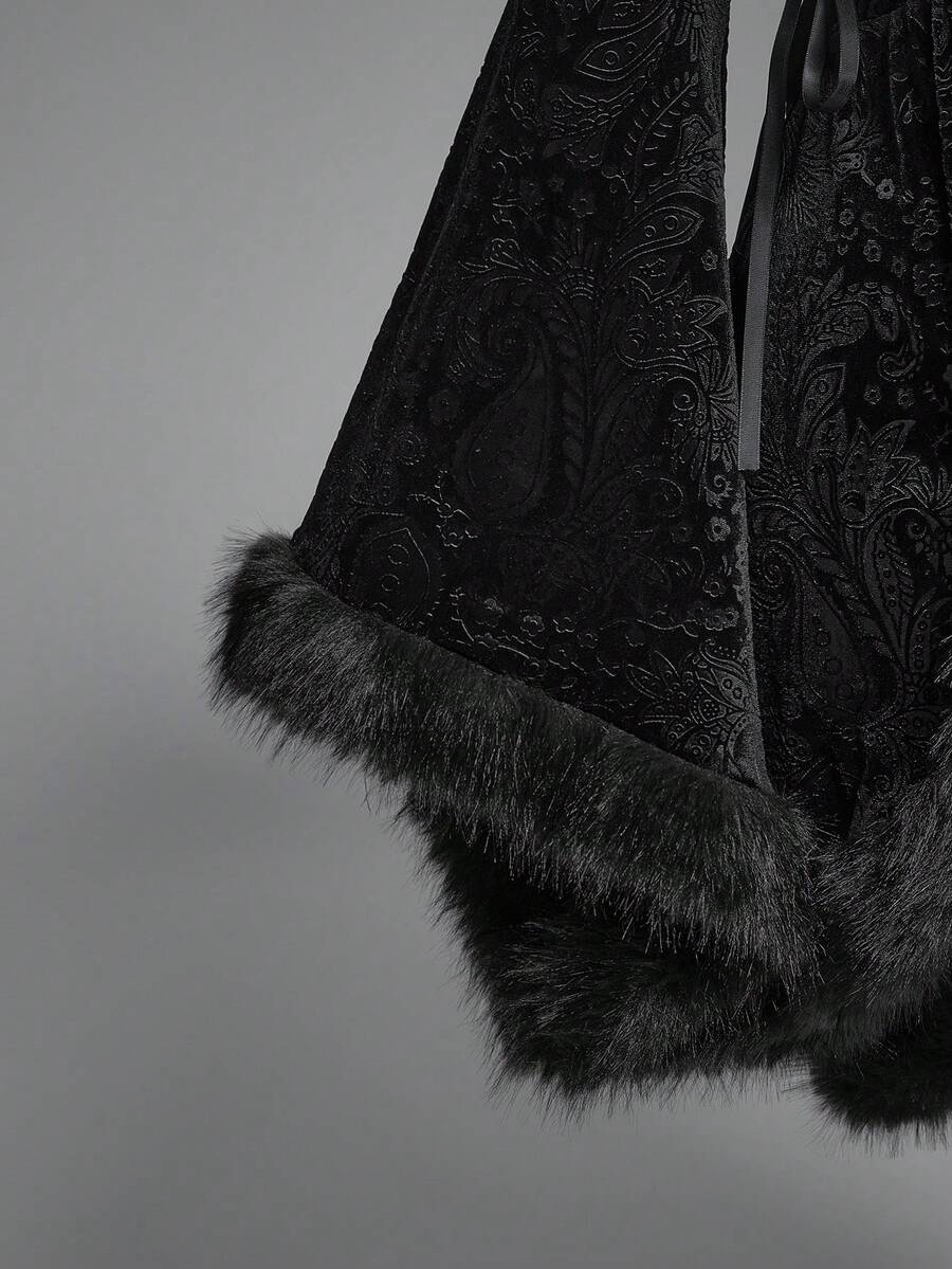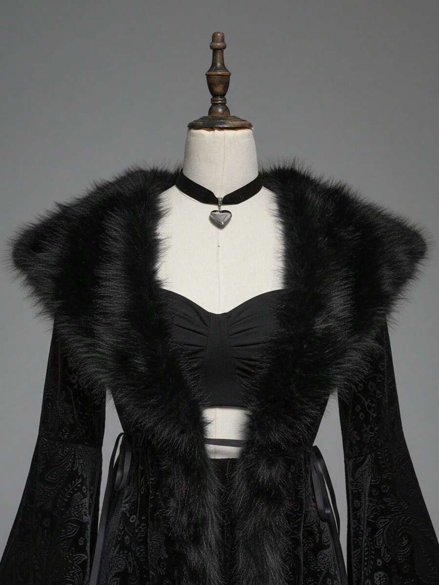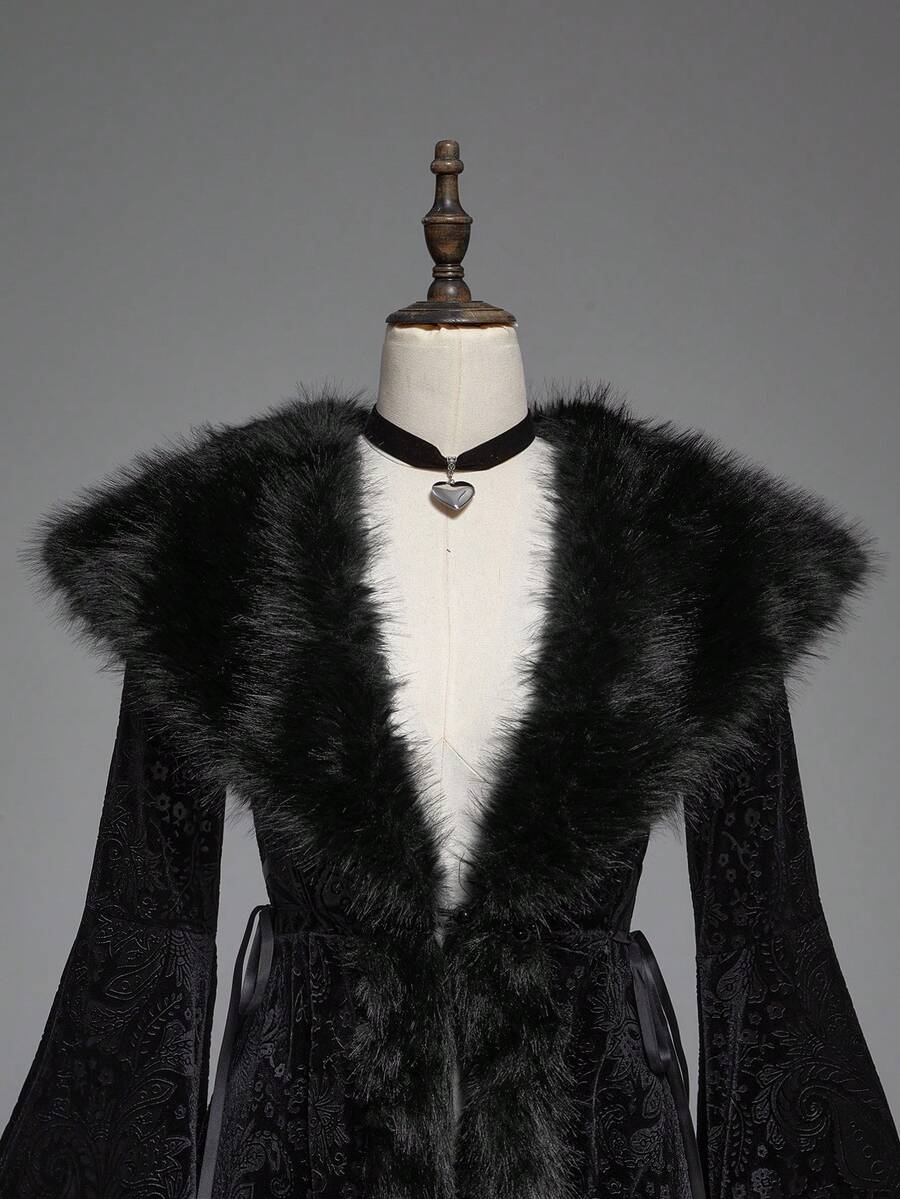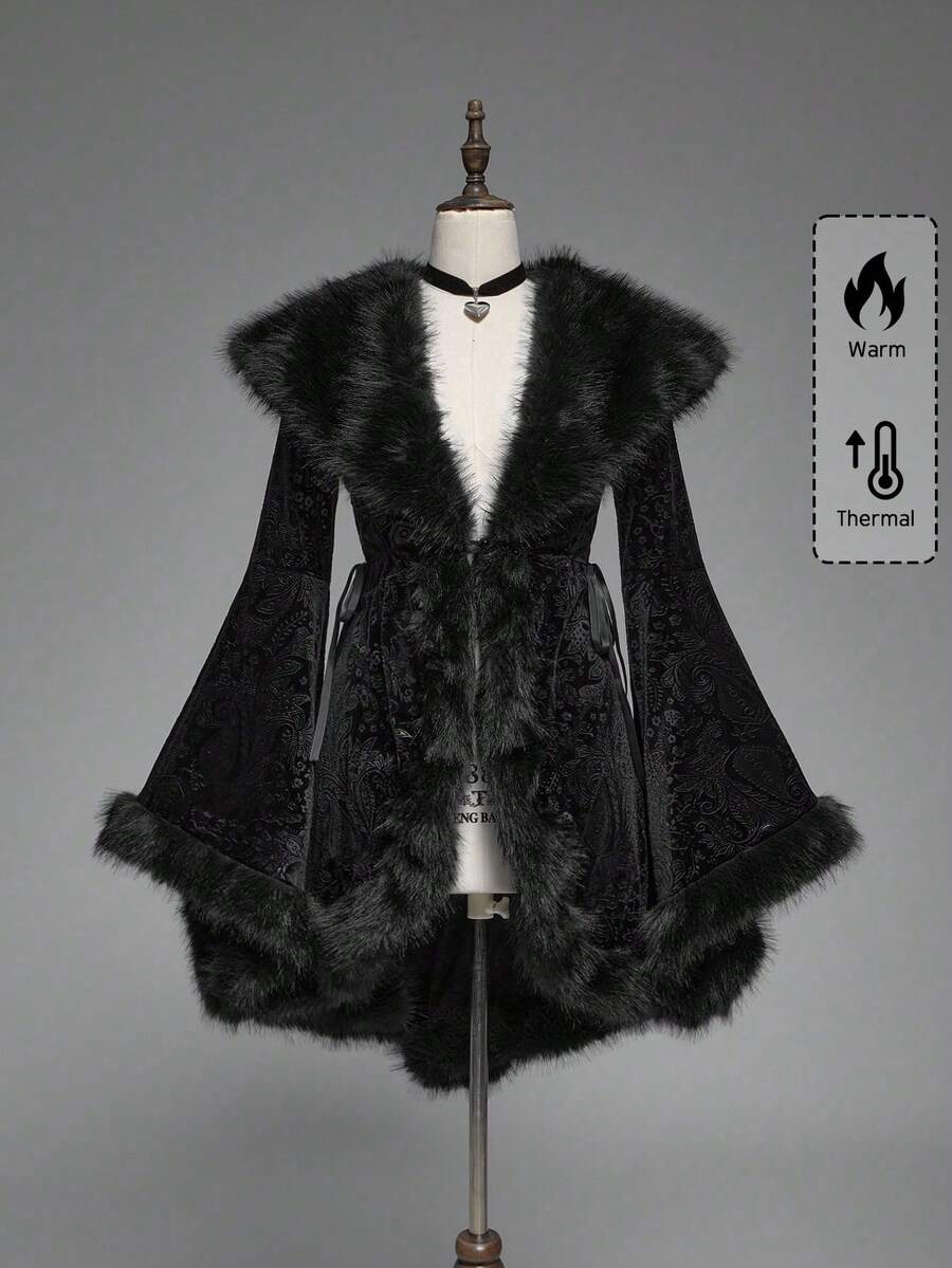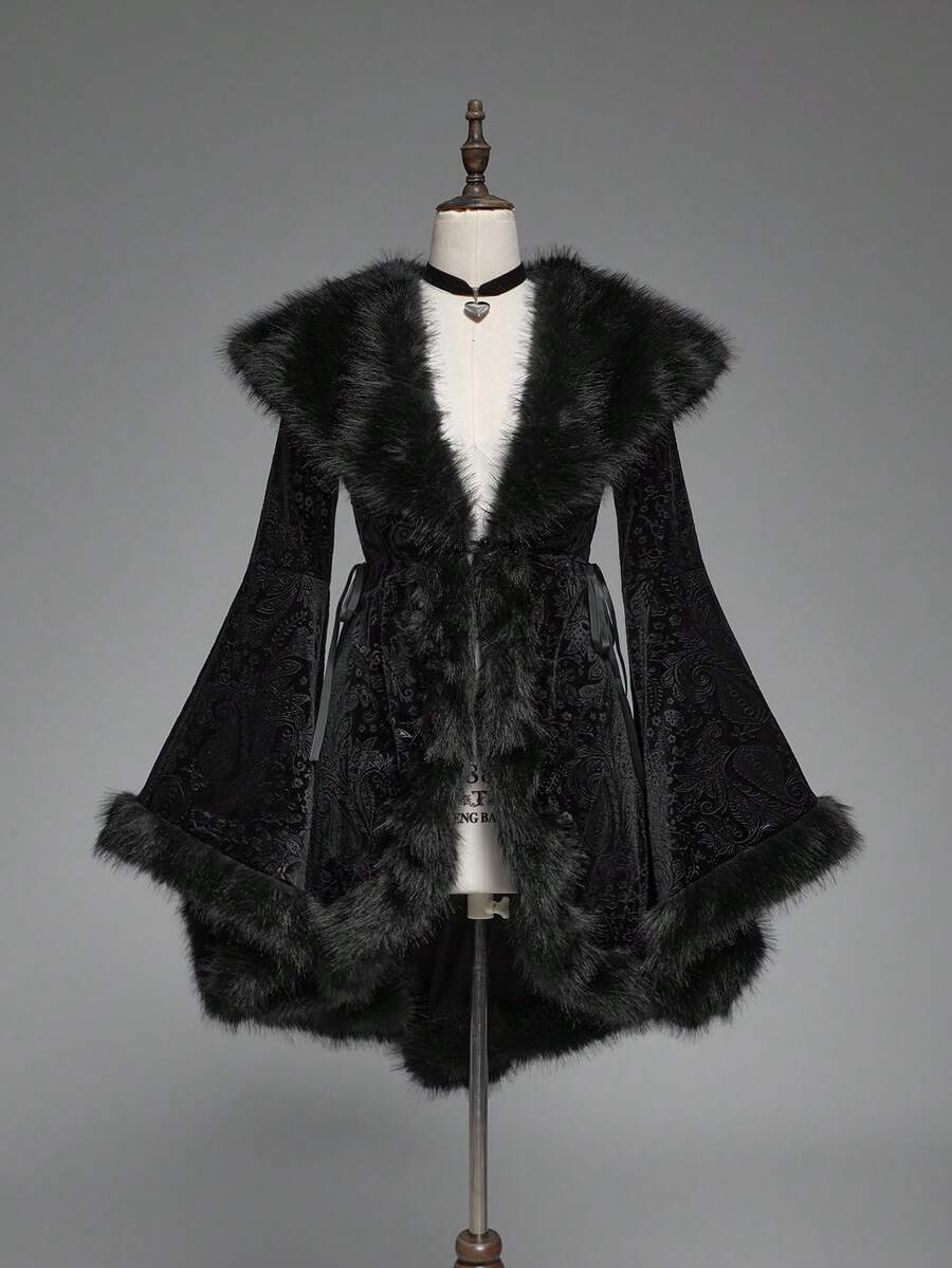 Goth Chaqueta regular con mangas acampanadas, cuello de piel sintética estilo vintage, patchwork, estampado de cachemira y terciopelo grabado en relieve con estilo gótico