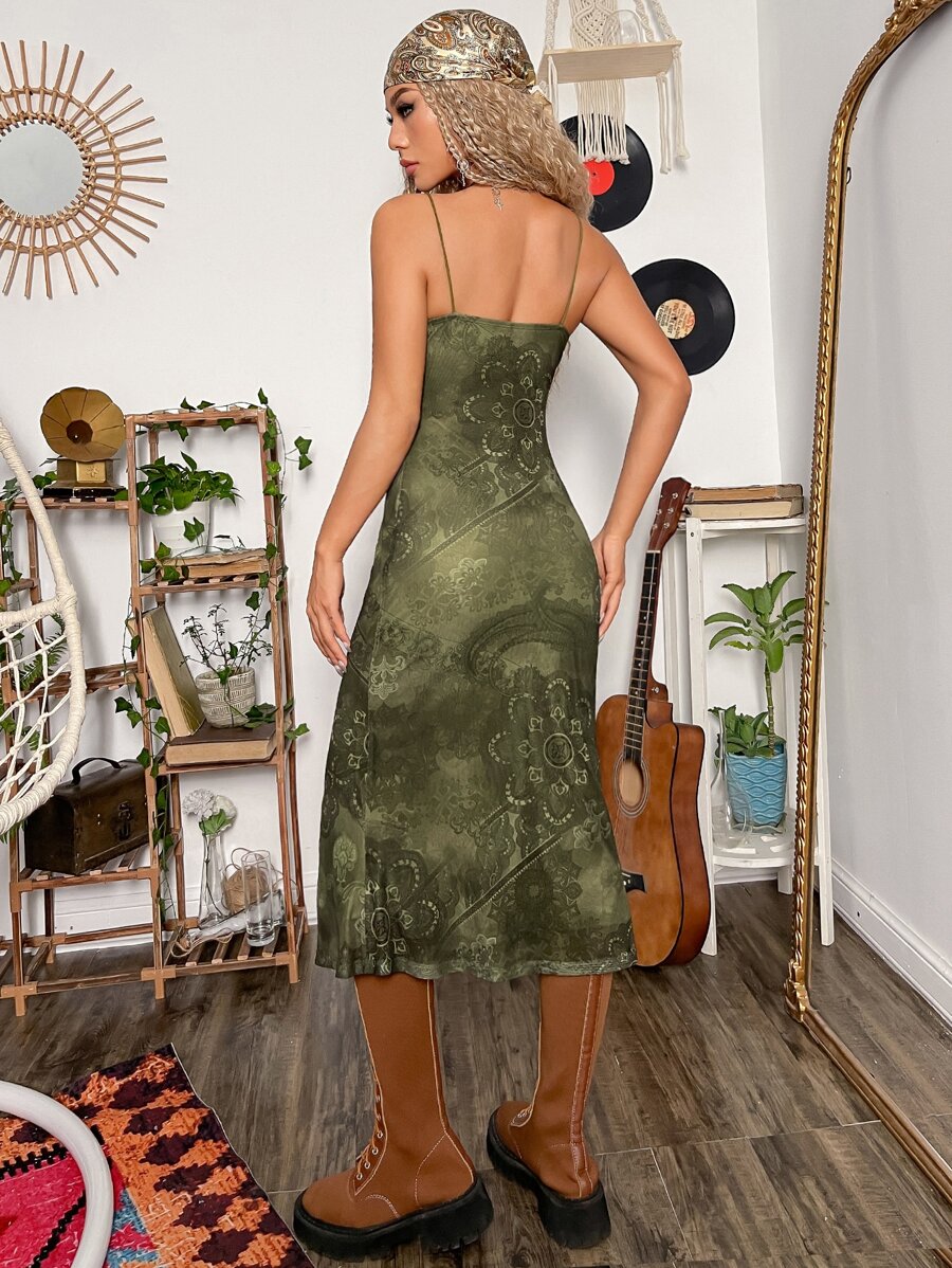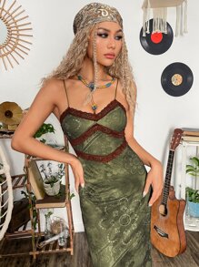 Vestido de tirantes grunge con estampado floral con encaje en contraste