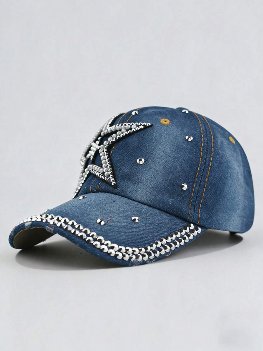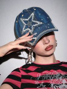 Grunge Punk 1 Gorra de béisbol con diamantes incrustados, estilo Y2K con patrón de estrellas, diseño casual, hebilla ajustable en la parte trasera, artículo de moda personalizado para uso diario