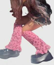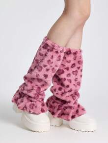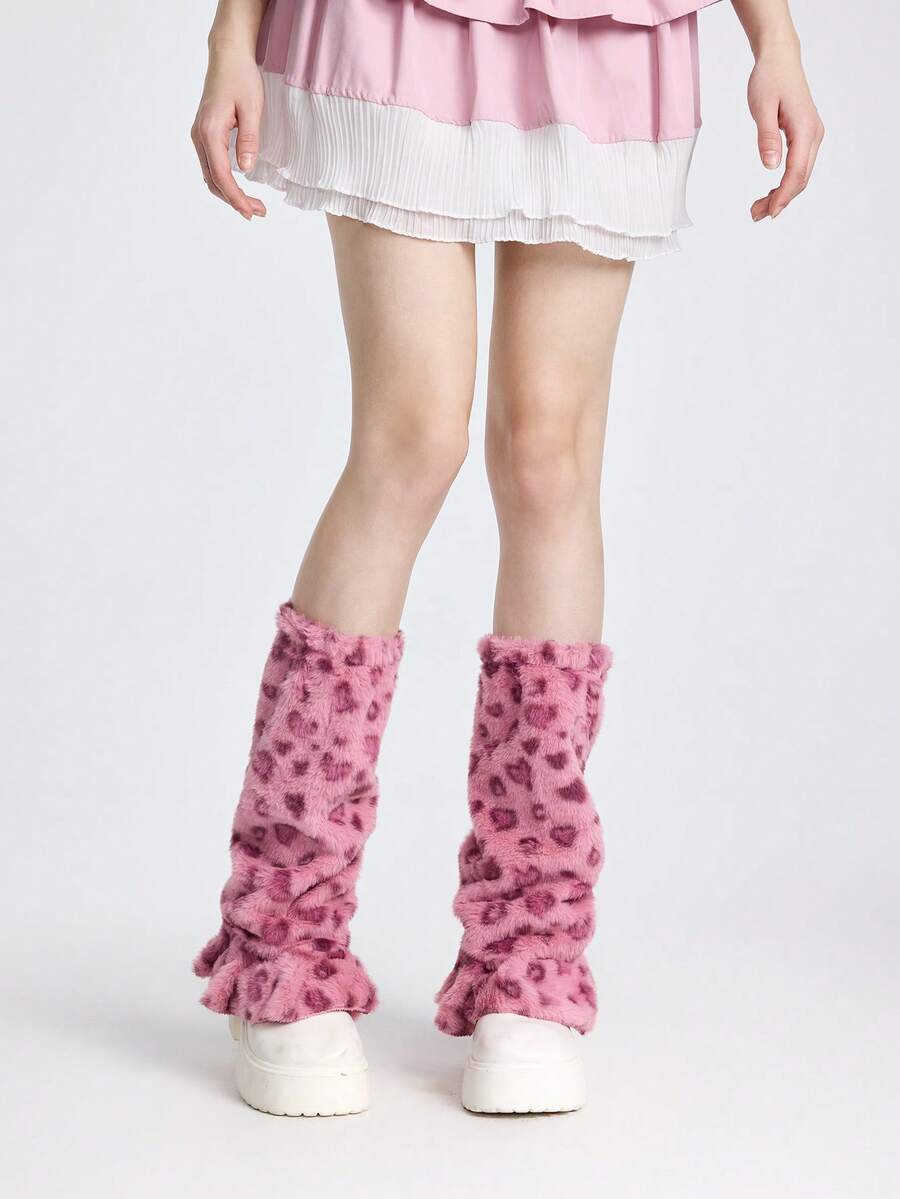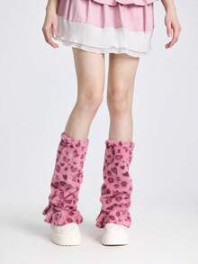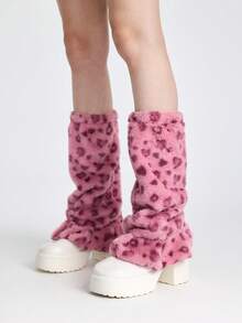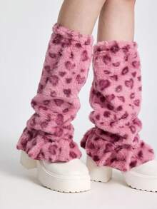 Grunge Punk 1 par de calentadores de piernas de pata ancha con fondo blanco y estampado de corazón y leopardo, estilo lindo y kawaii