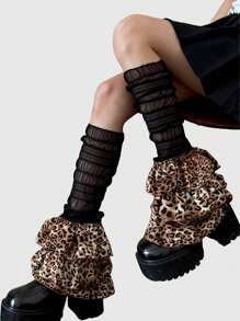 Grunge Punk 1 par de calentadores de piernas con volantes con volantes de estilo Y2K, calentadores de piernas acampanados y con volantes de encaje, elegantes y estilizadores, adecuados para uso diario y atuendos de fiesta