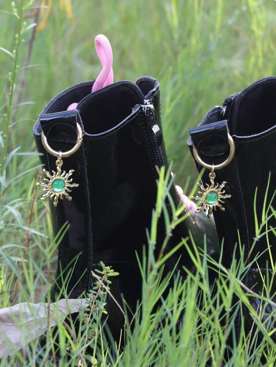 Grunge Punk 1 par de decoraciones de zapatos con girasol verde de estilo gótico