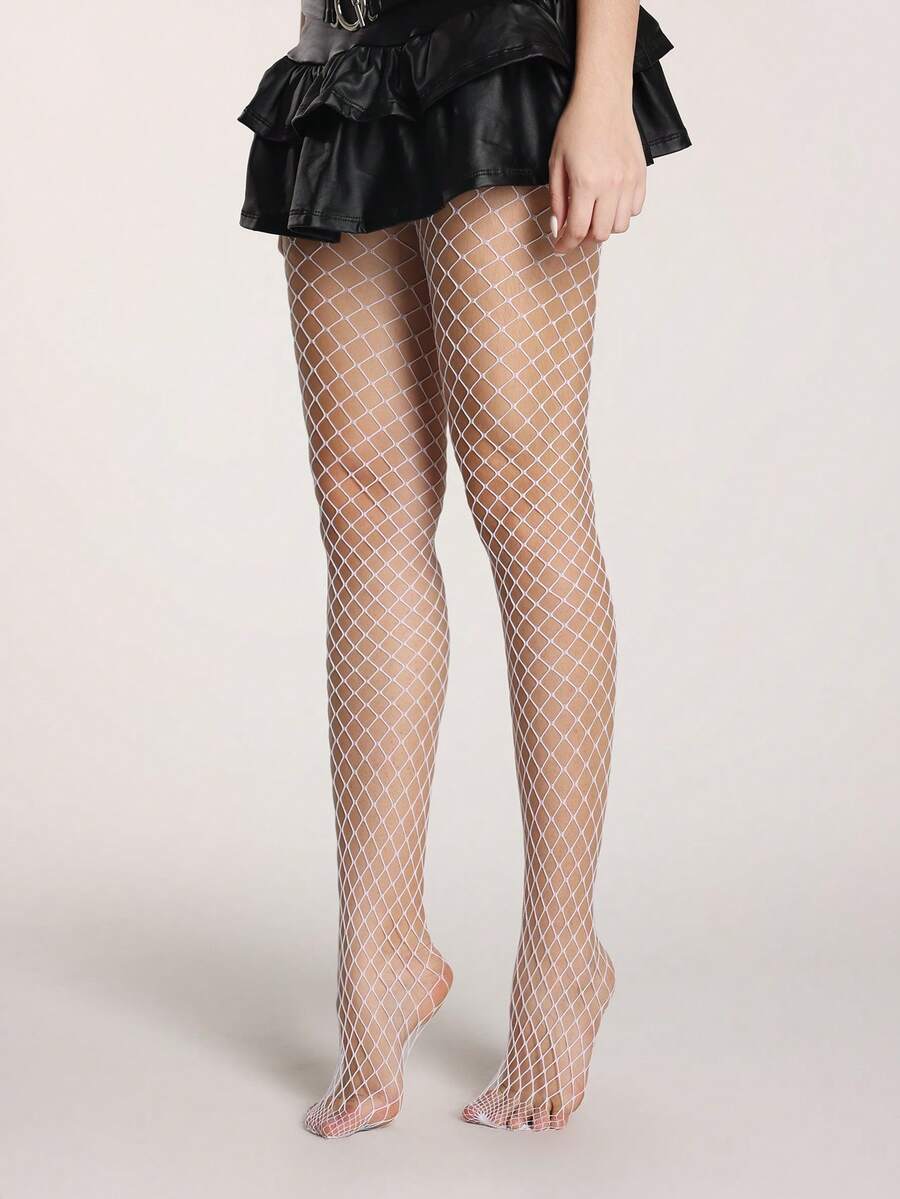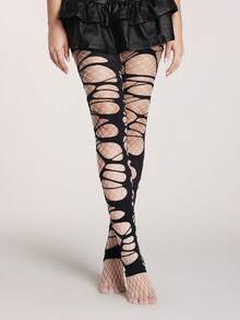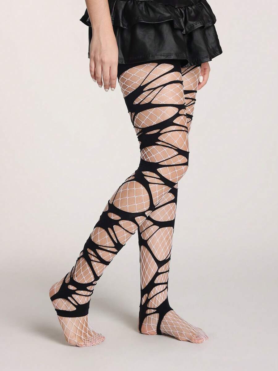 Grunge Punk 1 par de medias de red minimalistas + 1 par de medias negras rotas, conjunto de combinación de medias estilo Y2K, medias elásticas translúcidas y sexys de uso diario versátil