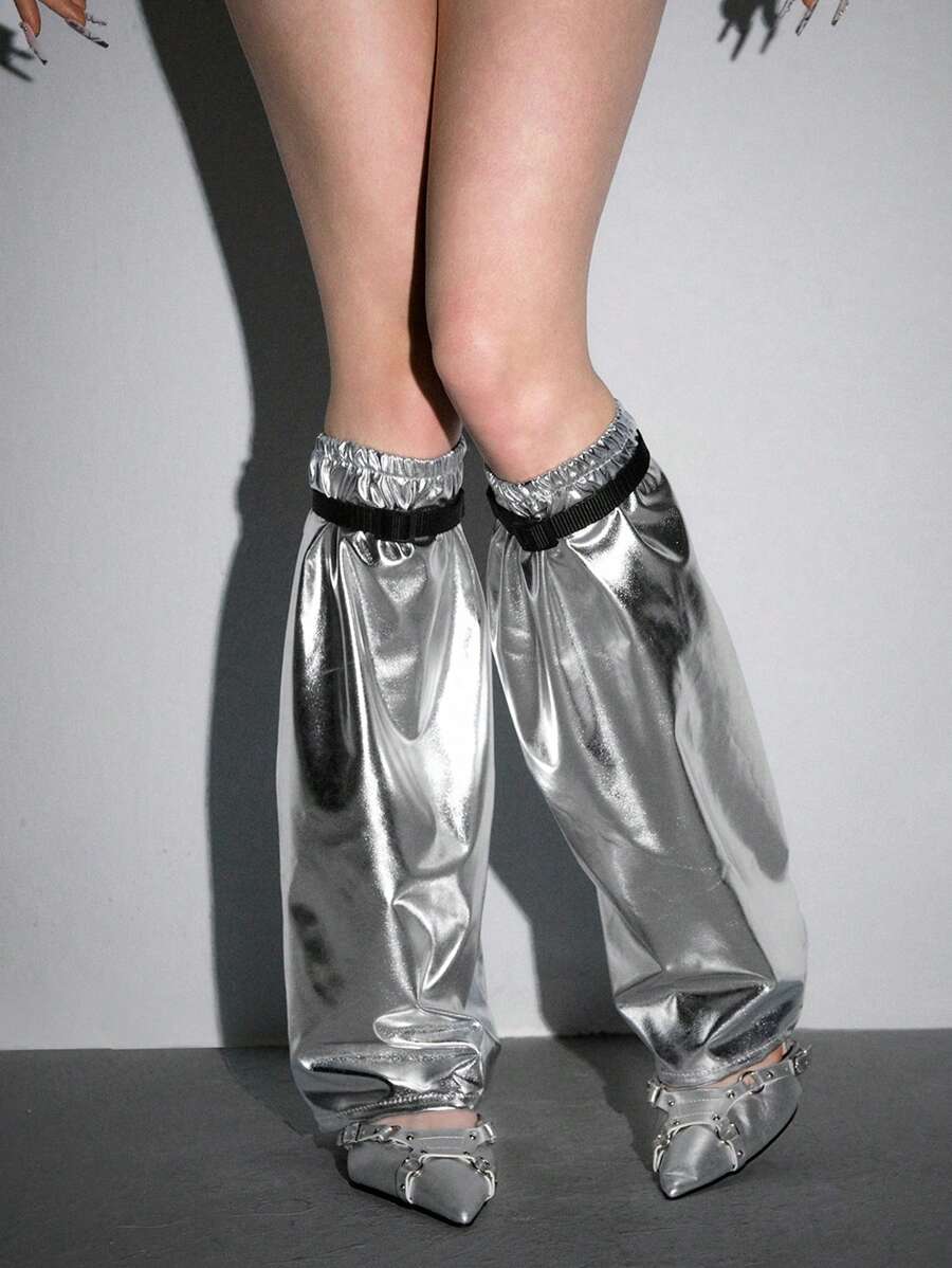 Grunge Punk 1 par de calentadores de piernas con efecto campana de estilo punk, calentadores de piernas futuristas de un solo color Y2K, mallas versátiles y de moda para uso casual