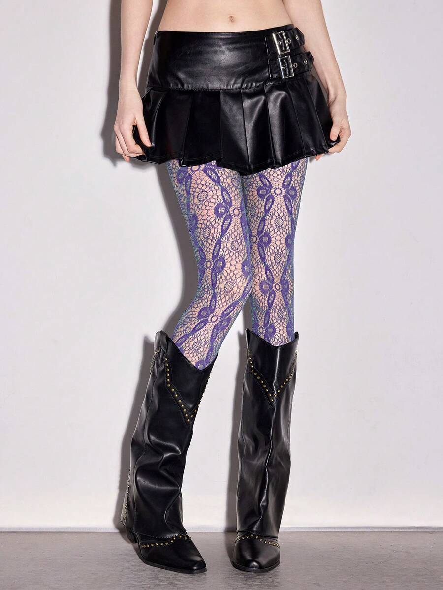 Grunge Punk 1 par de pantis para mujer de todas las temporadas con base de encaje jacquard de color púrpura y verde