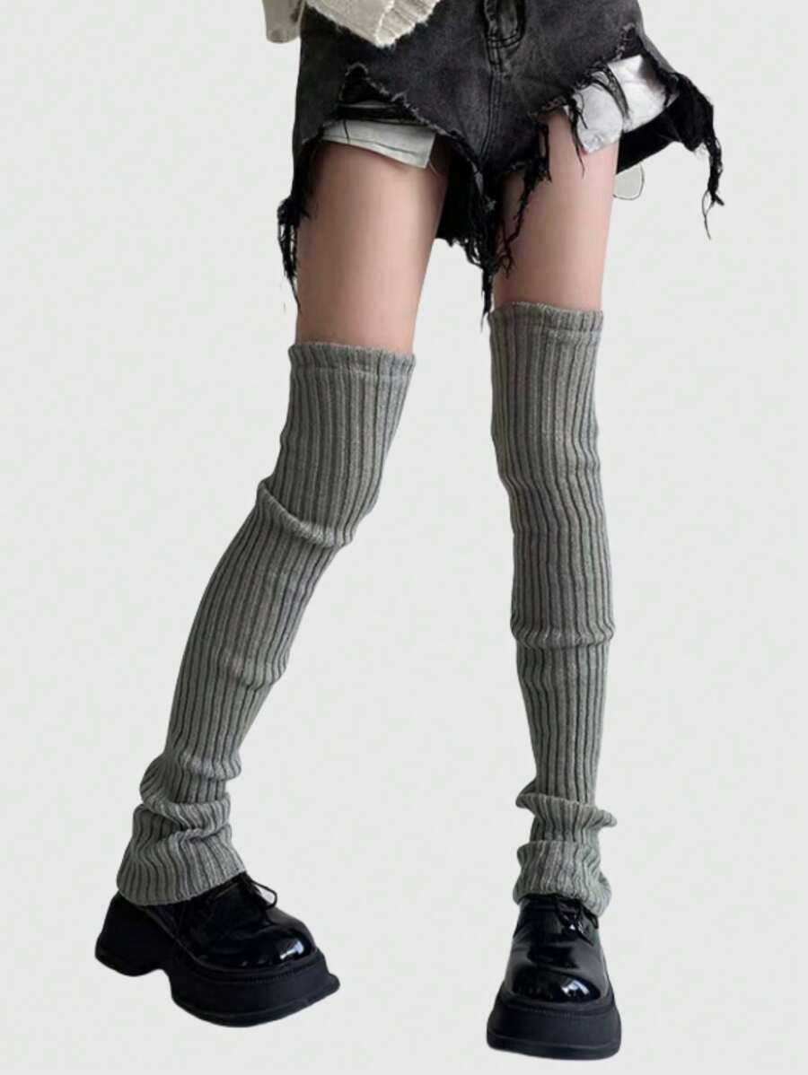 Grunge Punk 1 par de calentadores de pierna de punto de unicolor para mujer para todas las estaciones