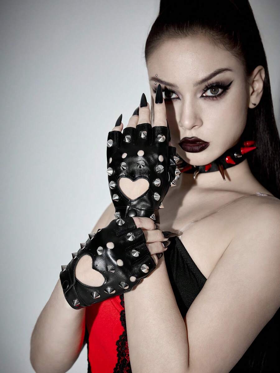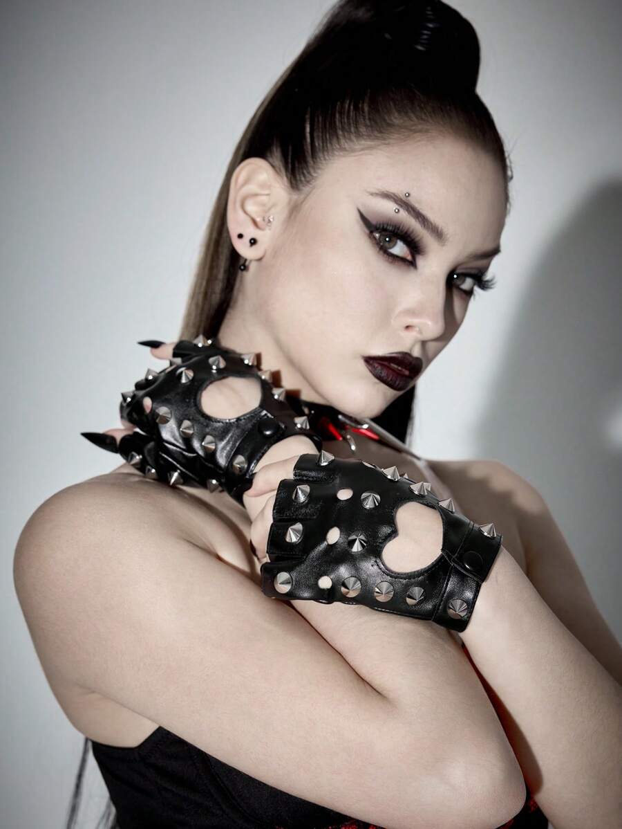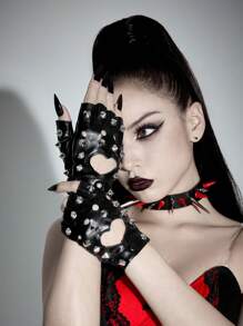 Grunge Punk 1 par de guantes sin dedos estilo punk para mujer con remaches y decoración de rhinestone, geniales para actuaciones de baile callejero