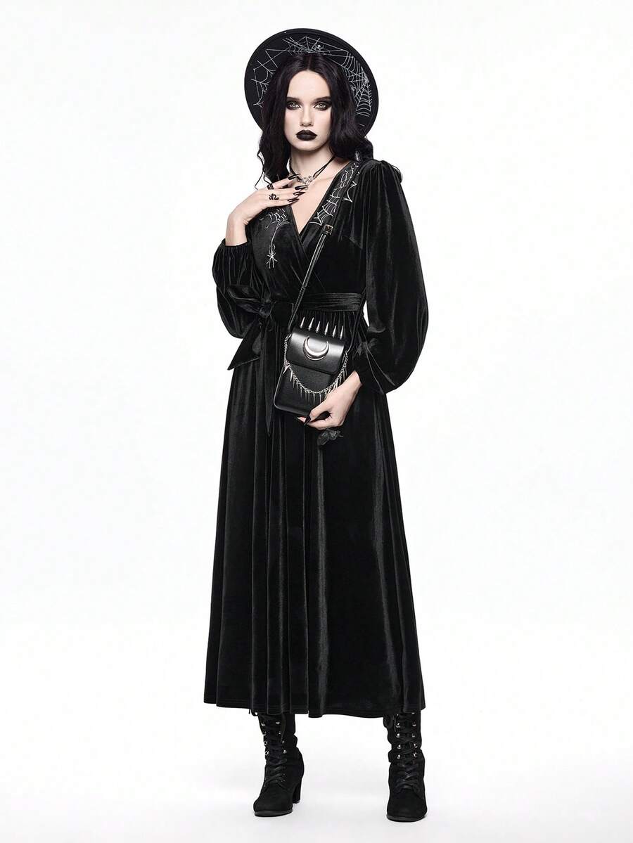 Grunge Punk Bolso bandolera mini con decoración metálica de media luna gótica y tachuelas, bolso de hombro negro punk Y2K para conciertos, salidas nocturnas y atuendos diarios