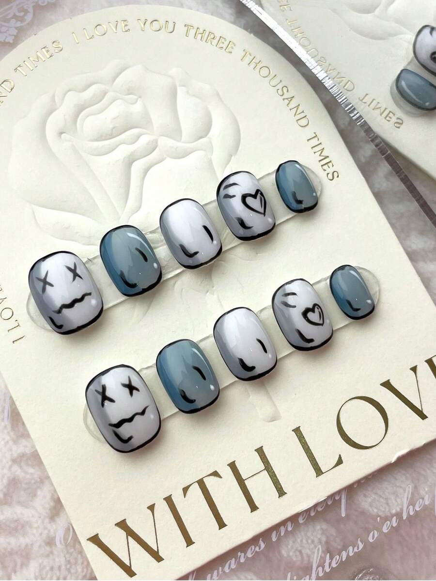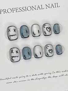 Grunge Punk 10 piezas corto cuadrado con estampado de corazón Uña postiza & 1 hoja cinta