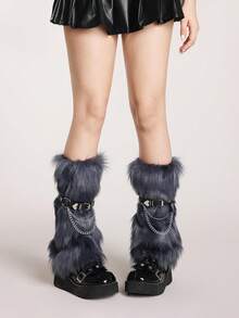 Grunge Punk 1 par de calentadores de piernas con estampado de leopardo, elegantes y cálidos para mujeres