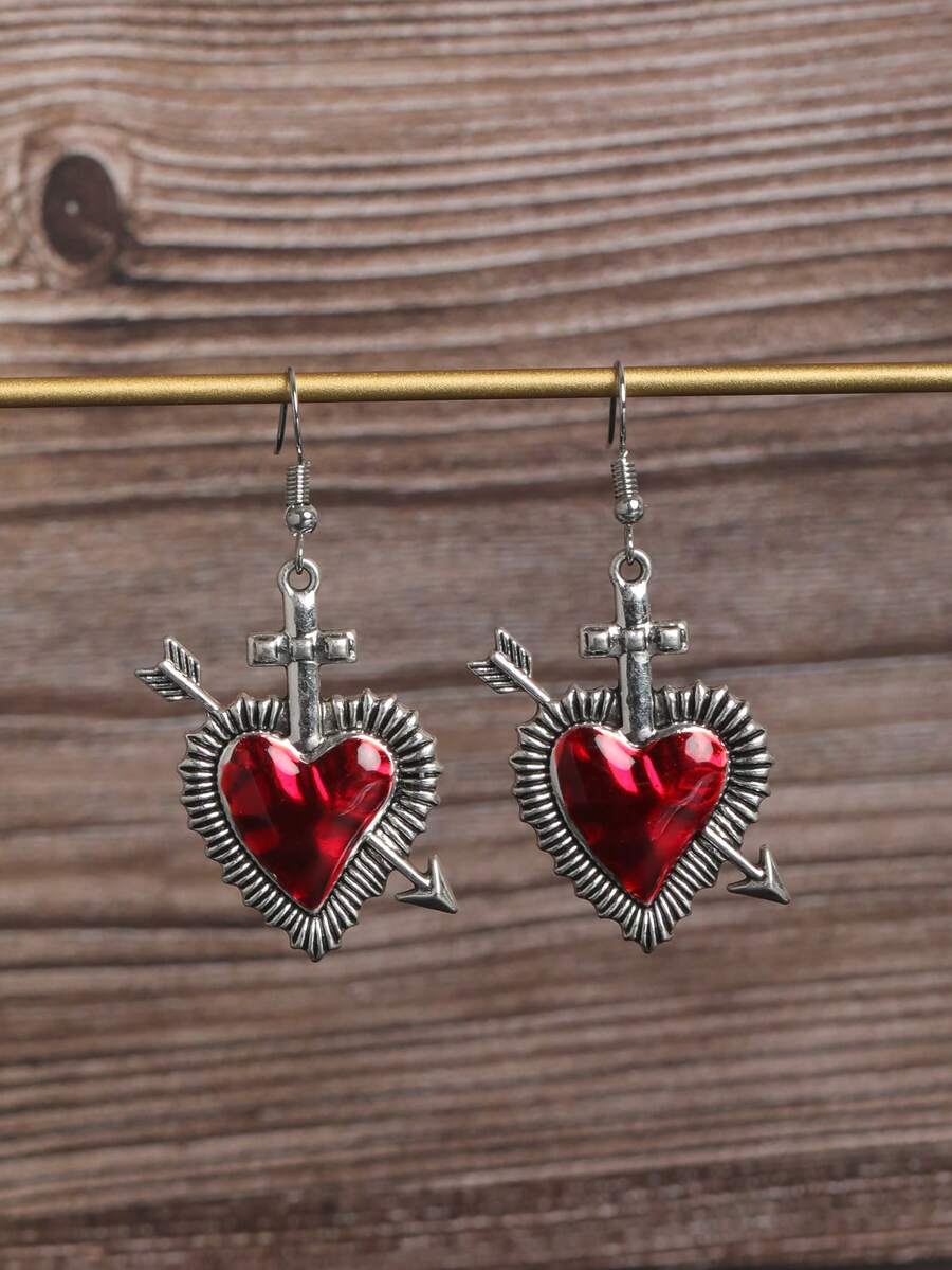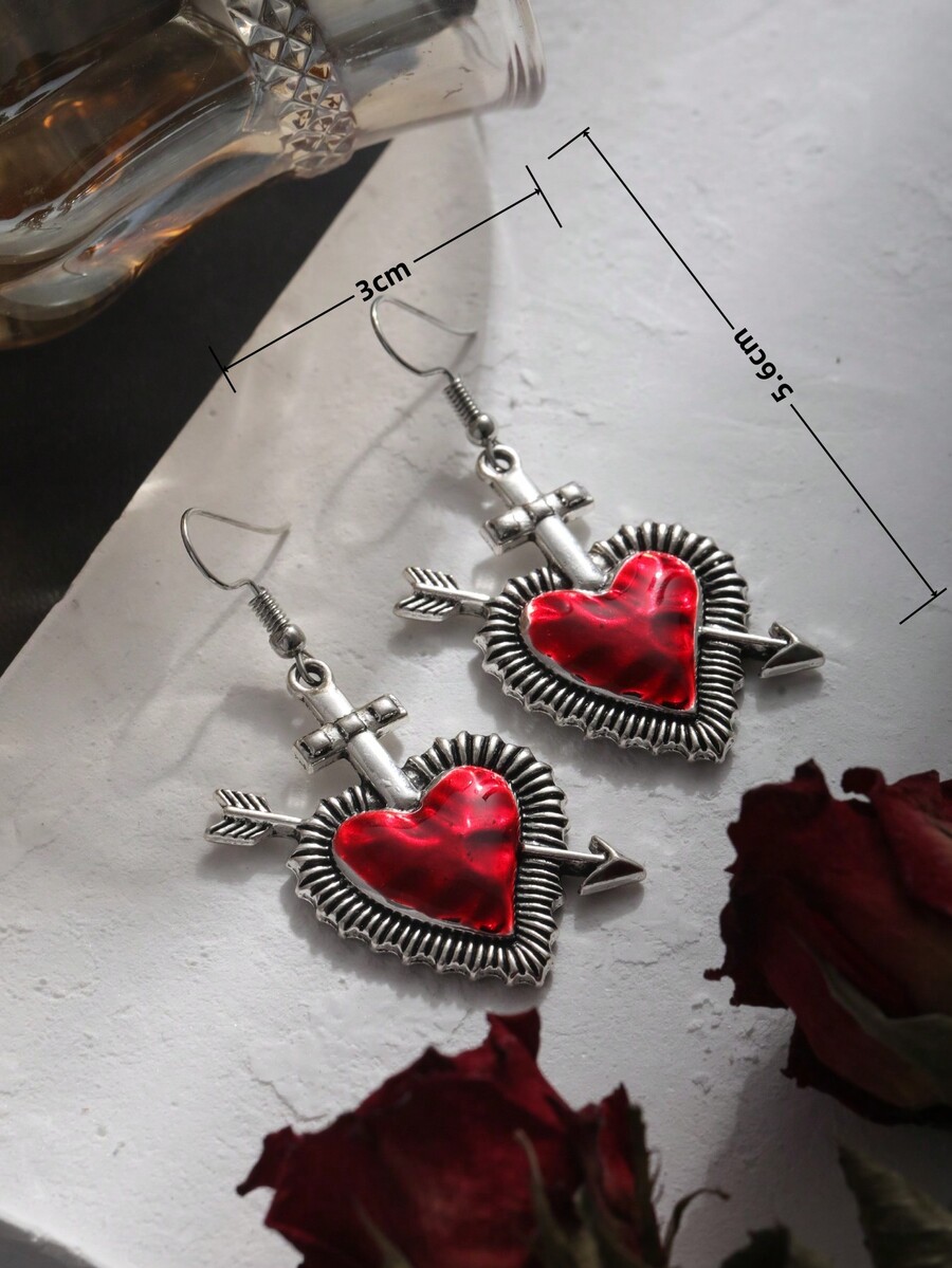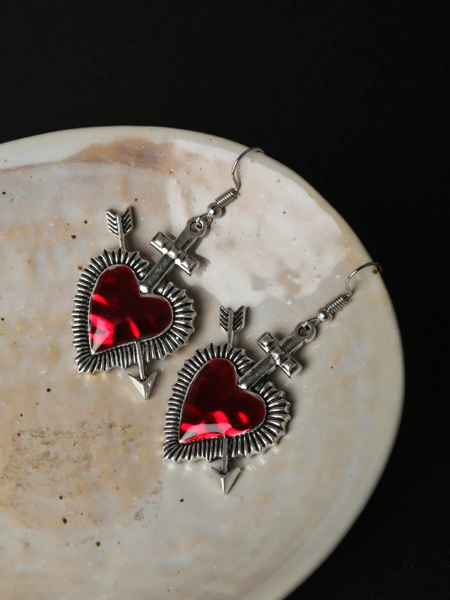Grunge Punk 1 Par De Aretes De Flecha Y Corazón De Estilo Punk De Metal Para Mujeres
