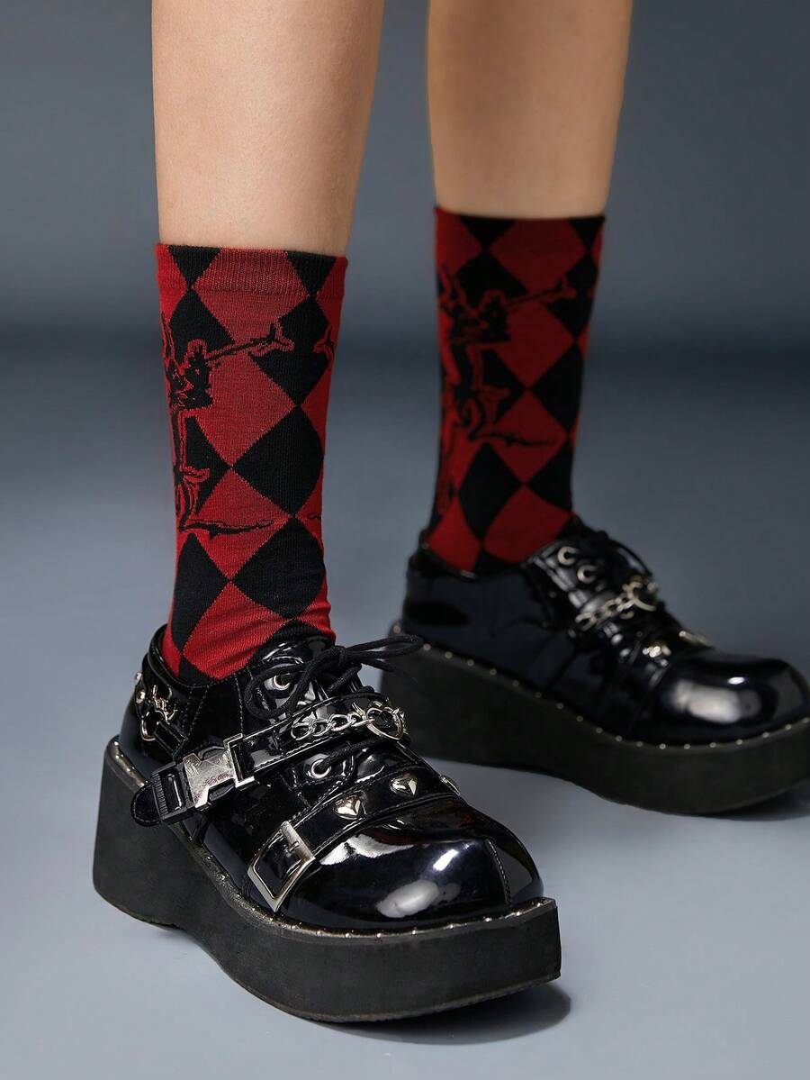 Grunge Punk Mujer 1 par Calcetines de tripulación payaso & con patrón geométrico moda