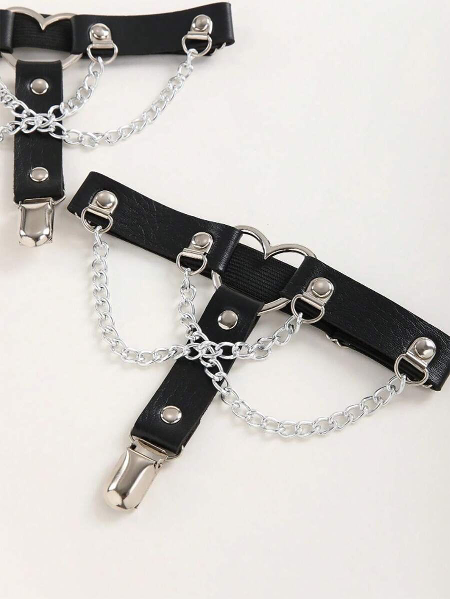 Grunge Punk Mujer 1 par Liguero a la cintura aro de corazón & con diseño de cadena