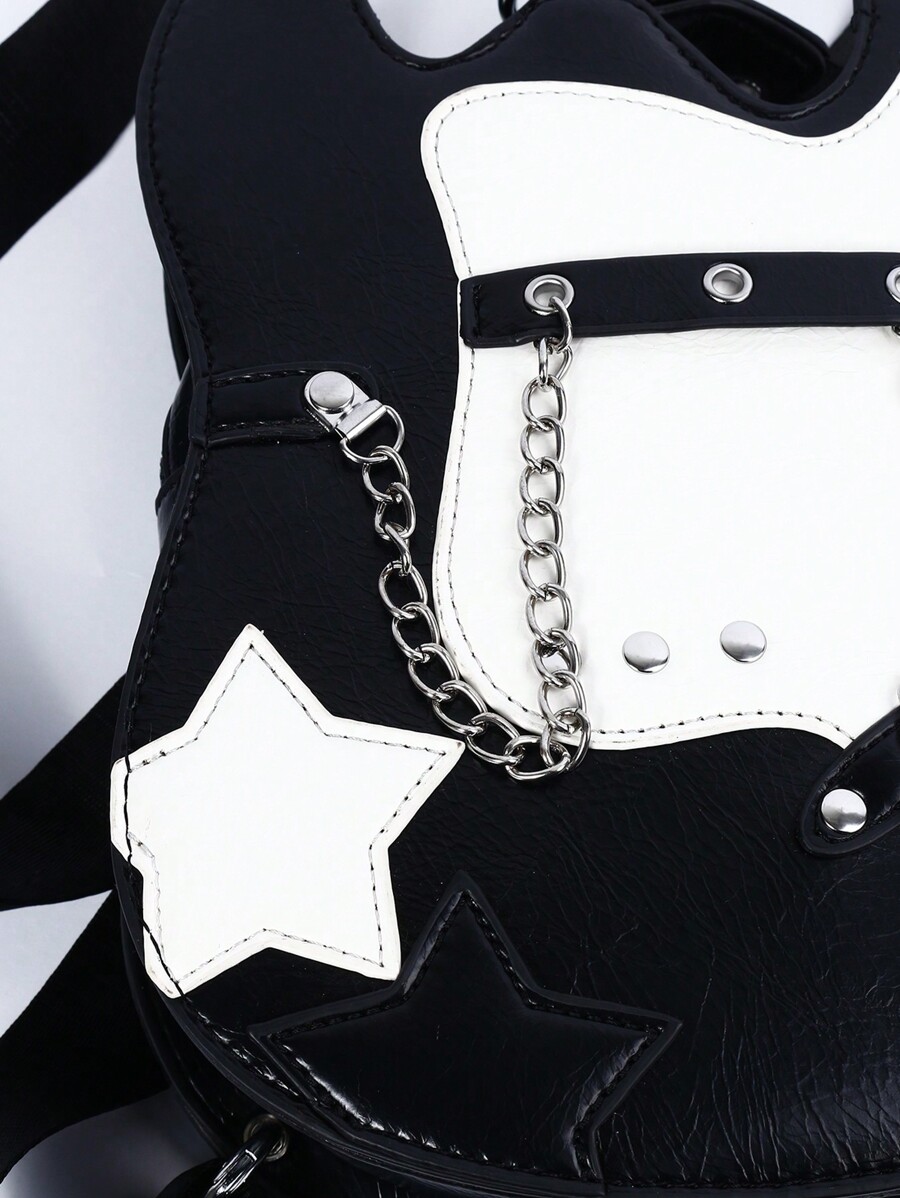 Grunge Punk 1 pieza Bolso de hombro con cadena con patrón de guitarra en blanco y negro y decoración de estrella