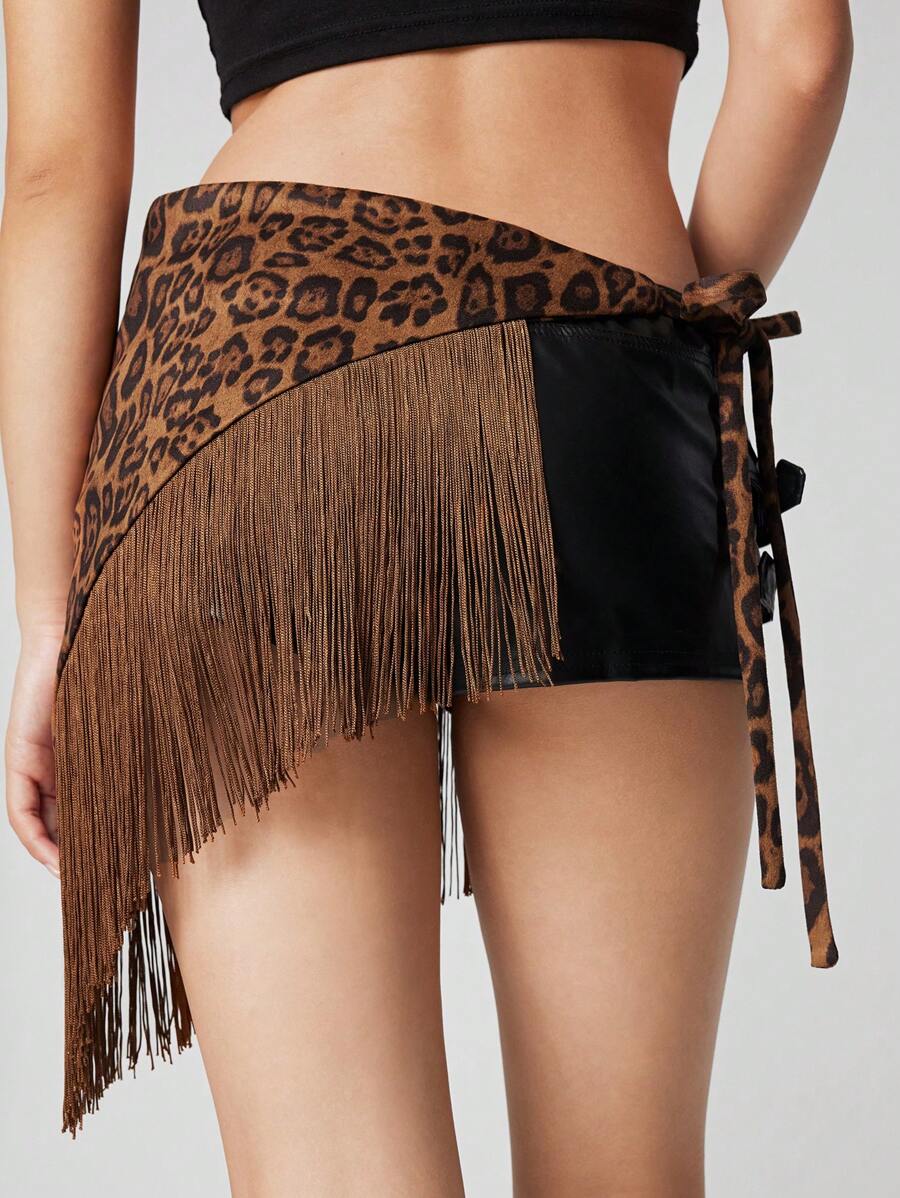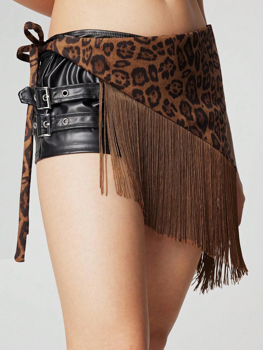 Grunge Punk 1 pieza Cinturón tipo corsé con estampado de leopardo marrón, banda de cintura con flecos vintage para vestidos, estilo casual, fiesta y punk