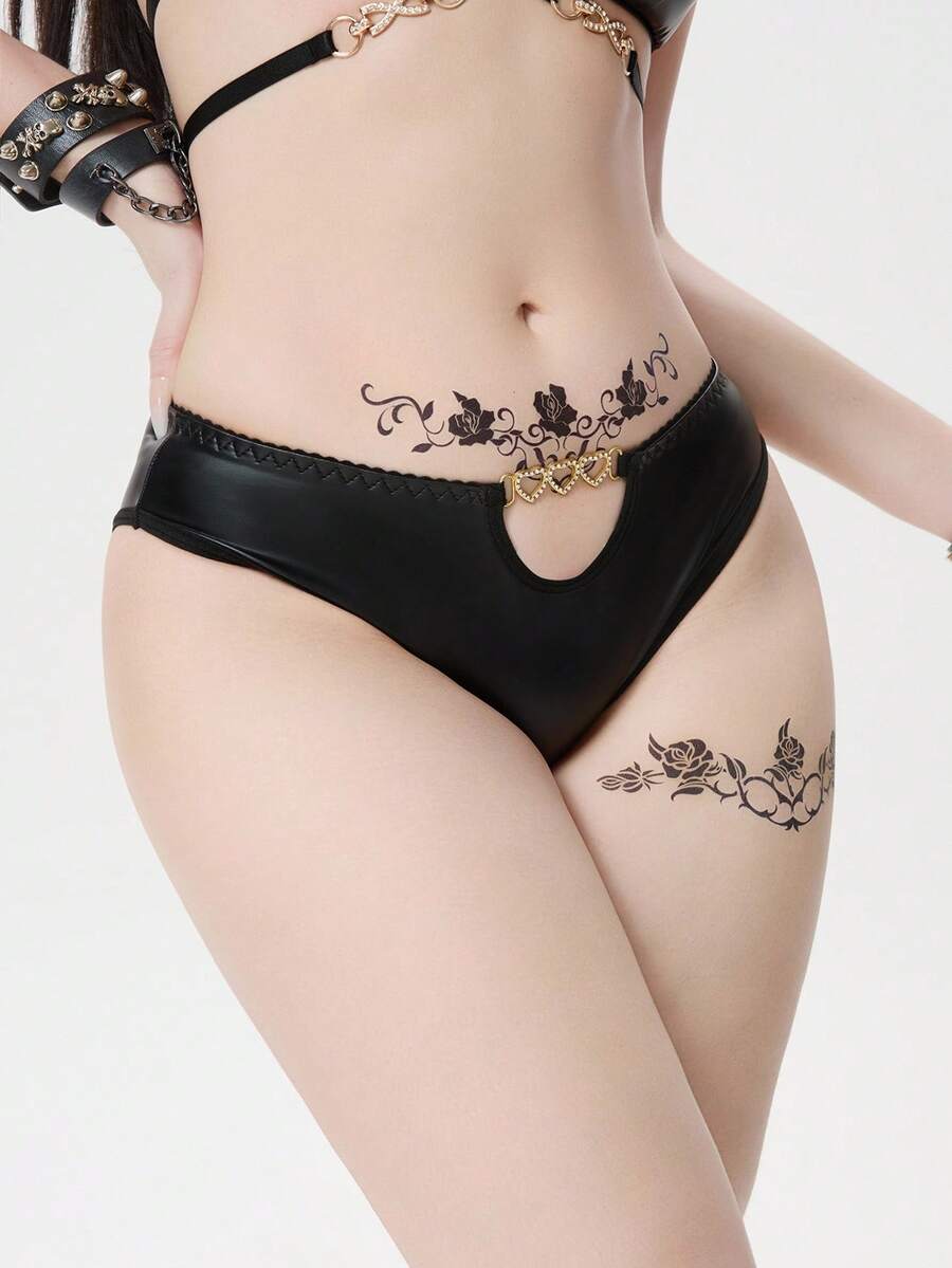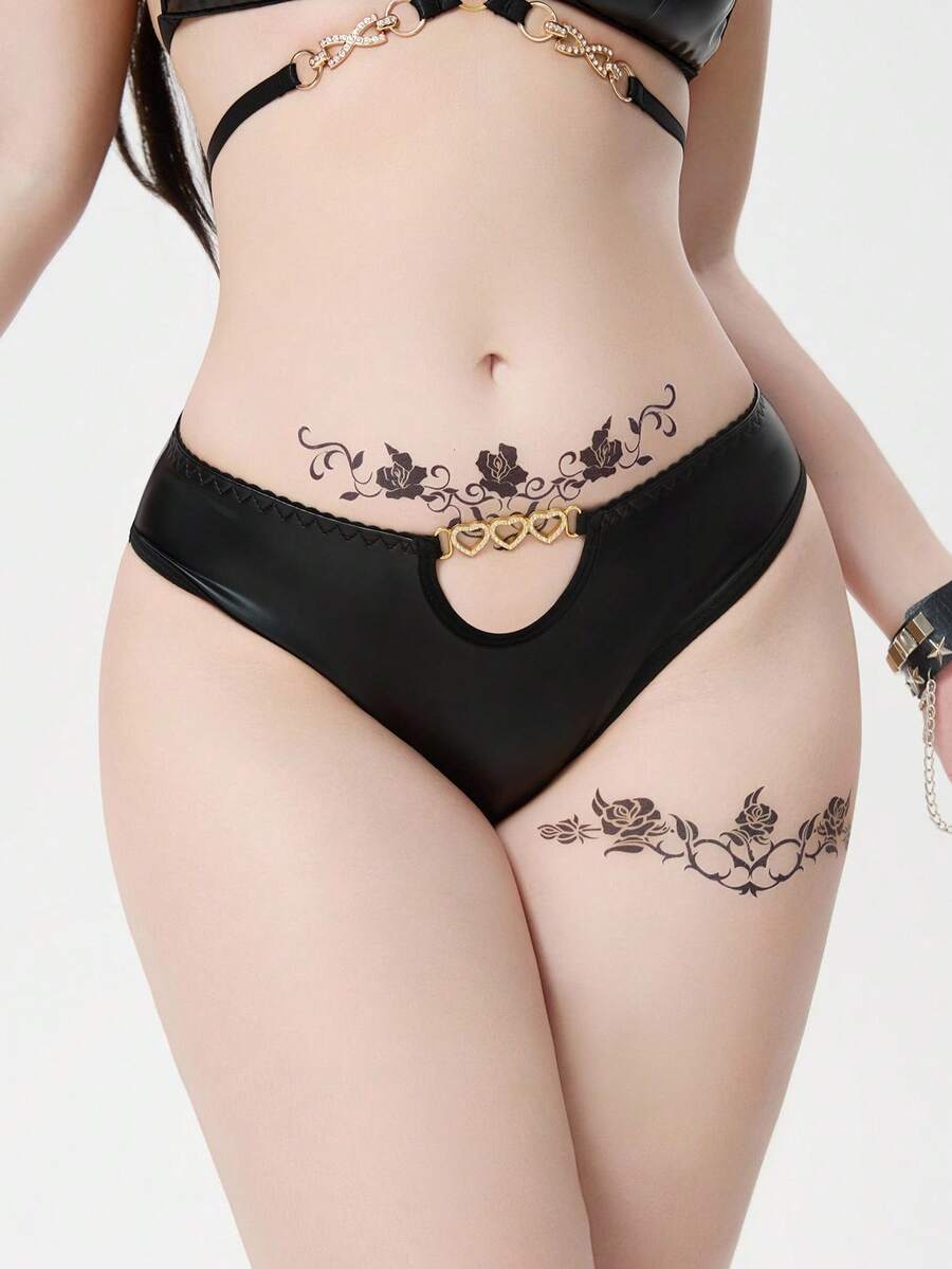 Grunge Punk 1 pieza Tanga con hebilla de metal de corazón oscuro y punk