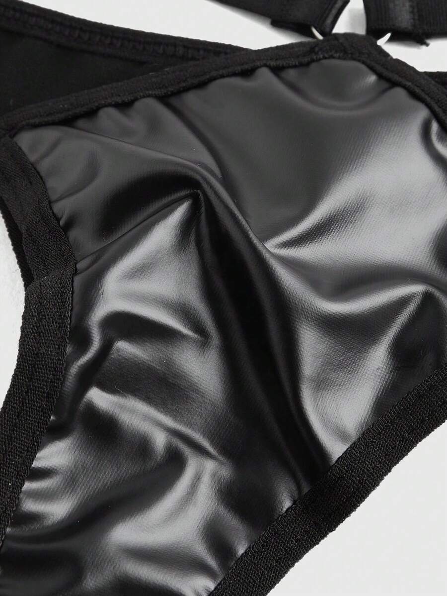 Grunge Punk 1 pieza Tanga de estilo punk oscuro de material PU, sencillo y de moda para uso casual diario
