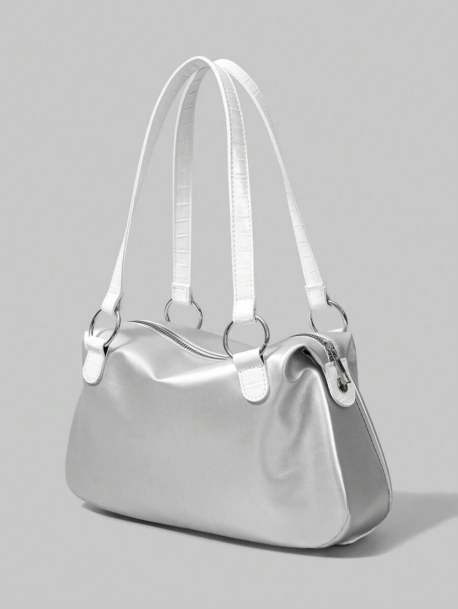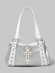 Grunge Punk 1 pieza Bolso de hombro estilo retro vanguardista con cruz plateada con tachuelas, estilo Y2K