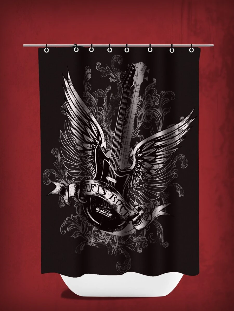 Grunge Punk 1 pieza Cortina de ducha guitarra & ala con estampado