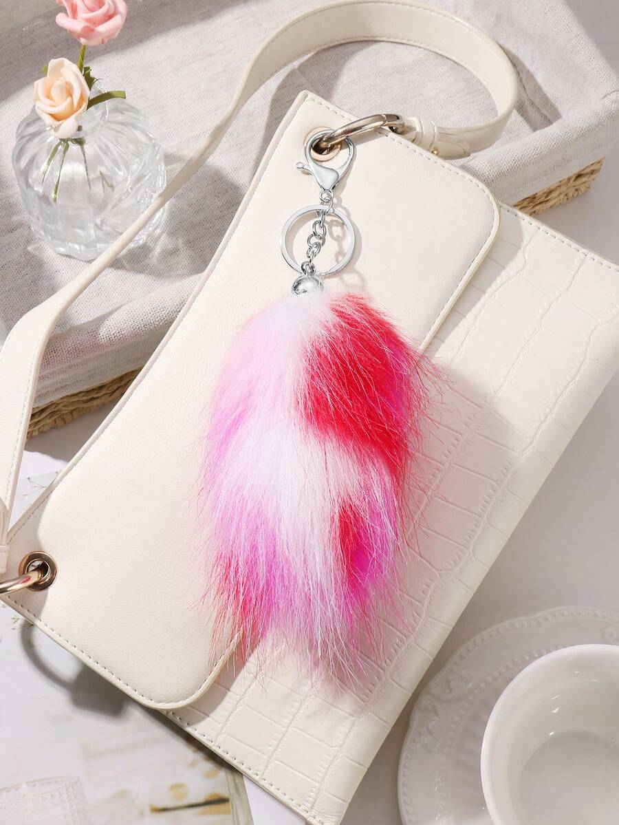 Grunge Punk 1 pieza Llavero y colgante de bolso con cola de animal de peluche rosa degradado de alta calidad, estilo coreano elegante y lindo, adecuado para uso diario de mujeres/niñas, regalo para días festivos