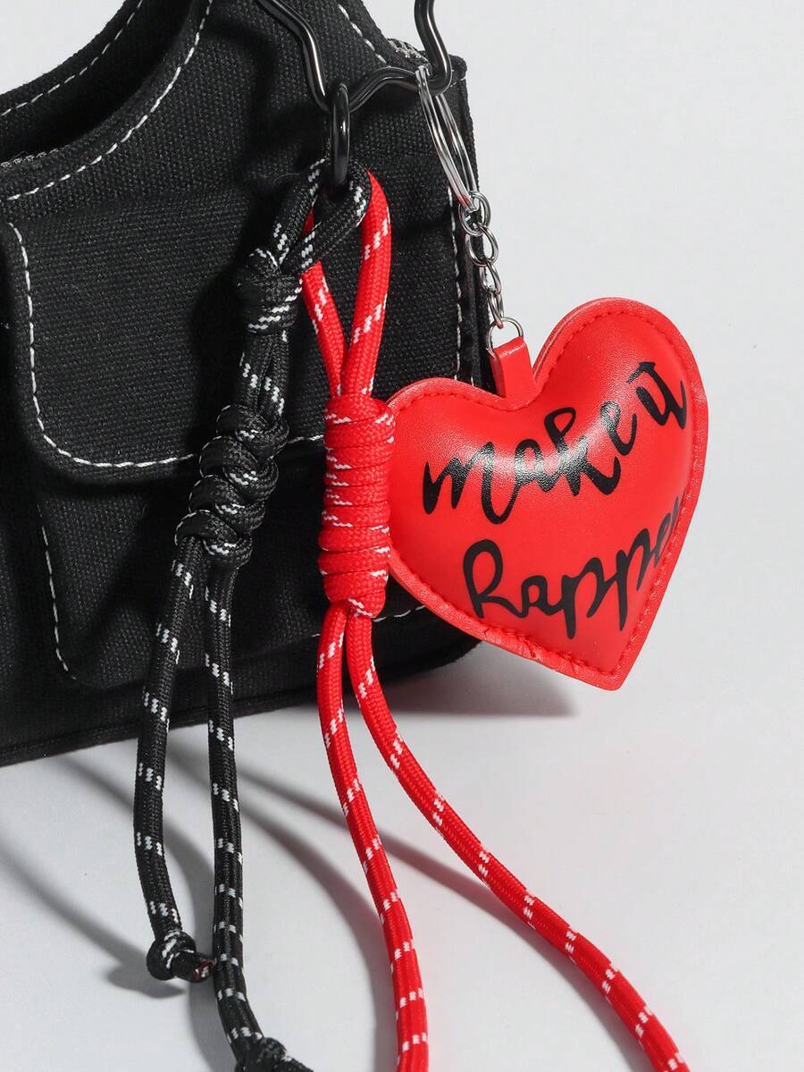 Grunge Punk 1 pieza Accesorio colgante de estilo campamento al aire libre con mosquetón, decoración de llavero con forma de corazón rojo para el Día de San Valentín