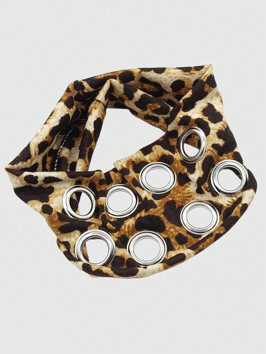 Grunge Punk 1 pieza Diadema de estilo minimalista oscuro con diseño hueco de leopardo de moda punk, accesorio de cabello versátil y personalizado que se puede usar como turbante o banda deportiva