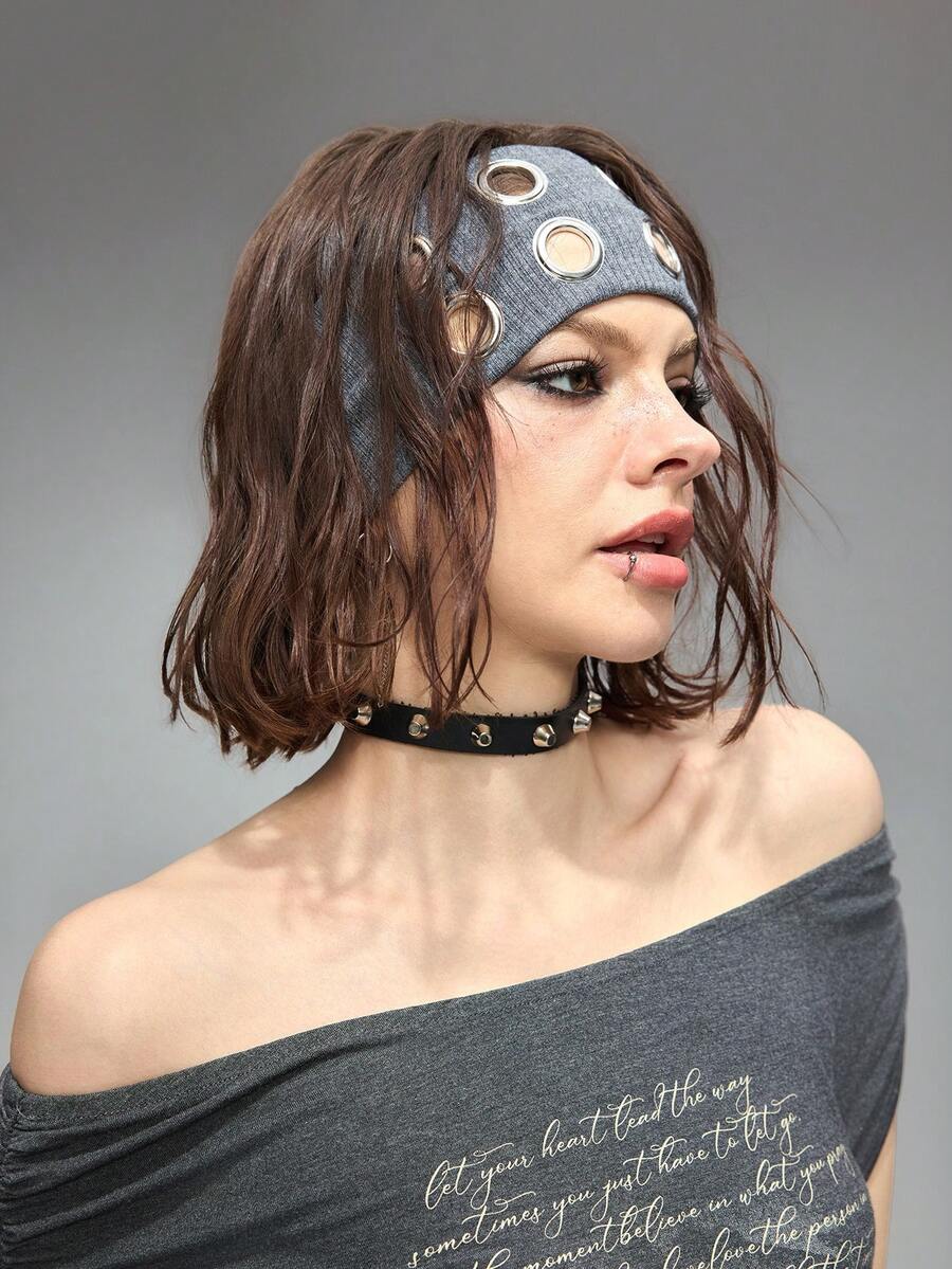 Grunge Punk 1 pieza Diadema de punto hueca de metal estilo punk, accesorio de cabello minimalista y amplio, diadema versátil casual tipo turbante y para hacer deporte