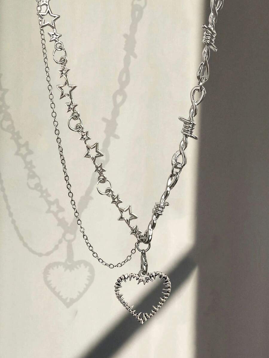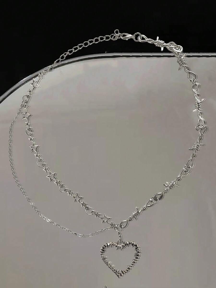 Grunge Punk 1 pieza Collar de cadena al azar moda aleación de zinc con accesorio de corazón con diseño de estrella para mujeres para decoración diaria