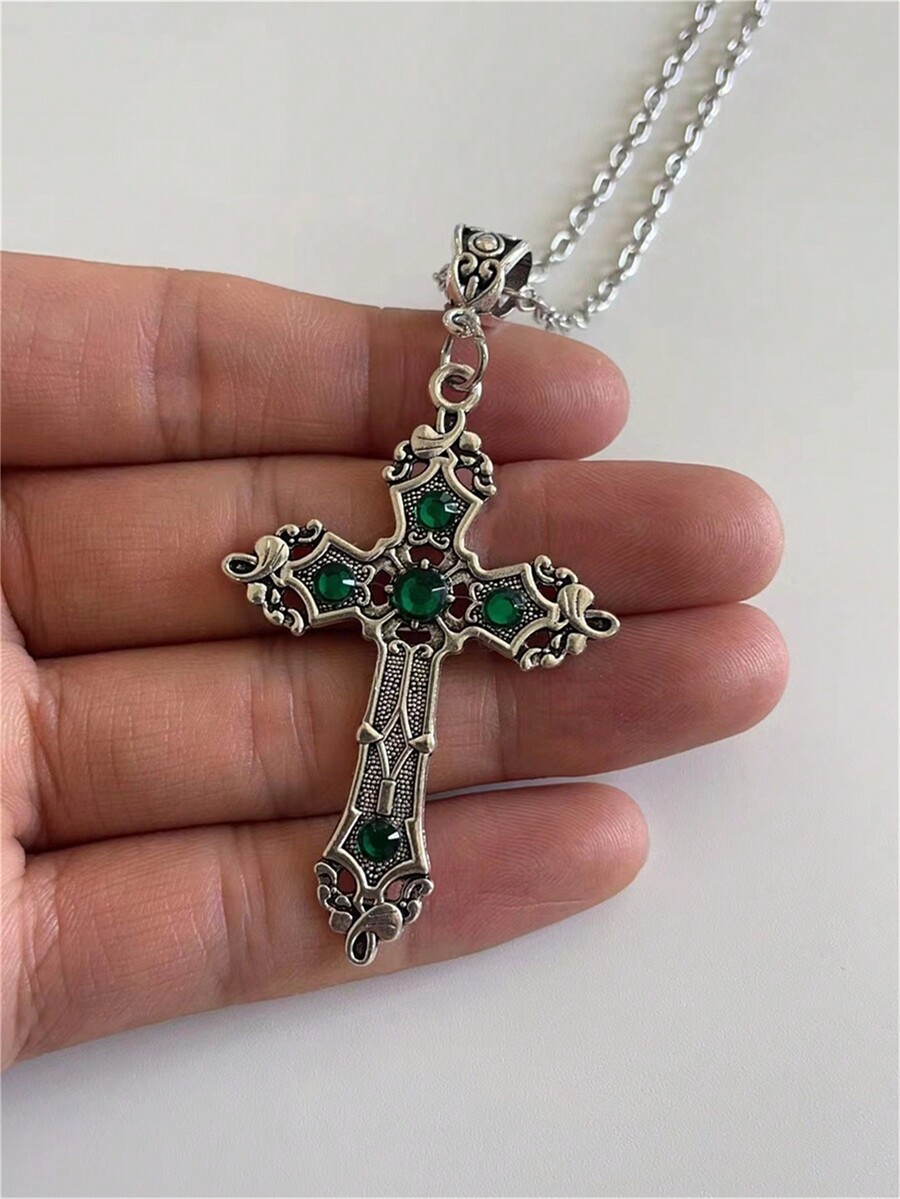 Grunge Punk 1 pieza Collar con diseño de diamante de imitación colgante Cruz