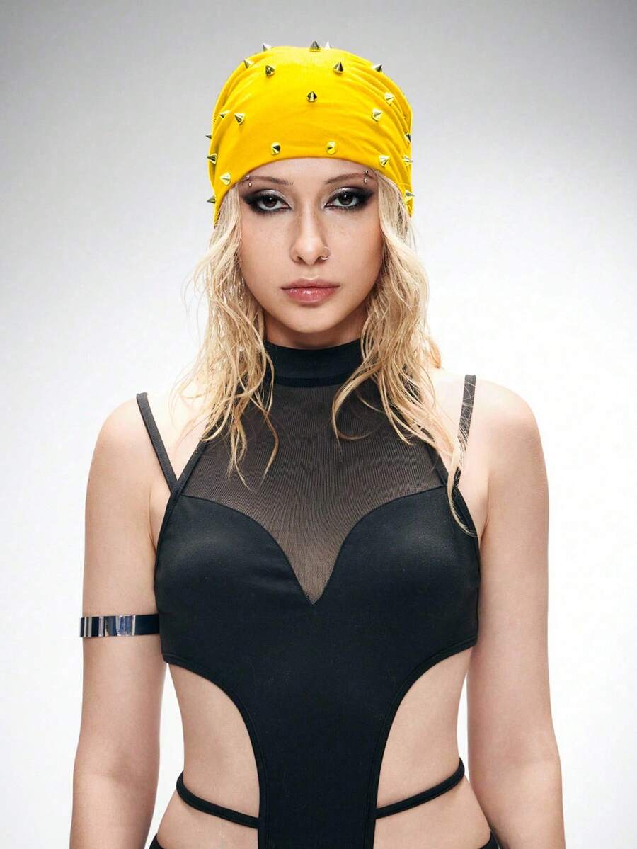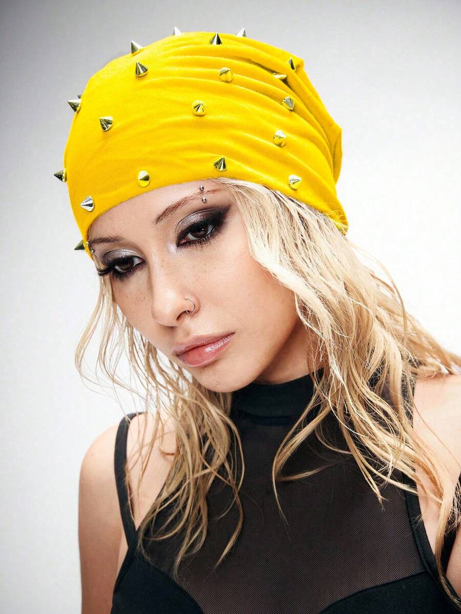 Grunge Punk 1 pieza Gorro estilo punk con remaches delgado, Gorra amarilla sólida vintage de alta calidad al estilo Y2K, holgado, para uso diario y en todas las estaciones