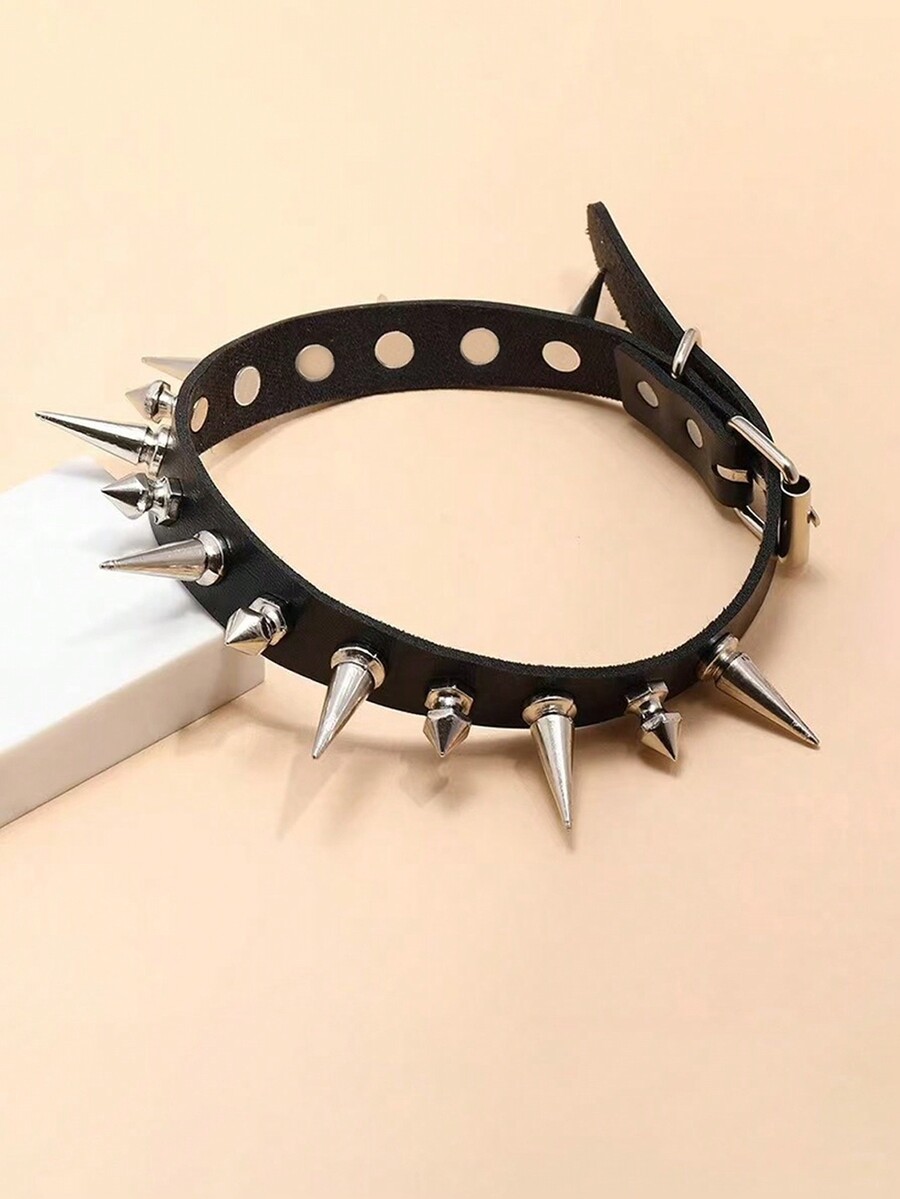 Grunge Punk 1 pieza Collar gargantilla de PU con pinchos, de moda única punk rock gótica, adecuado para uso diario