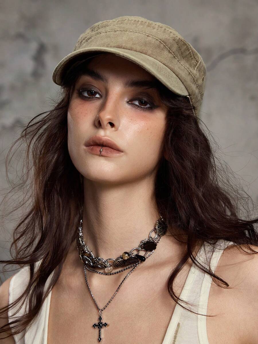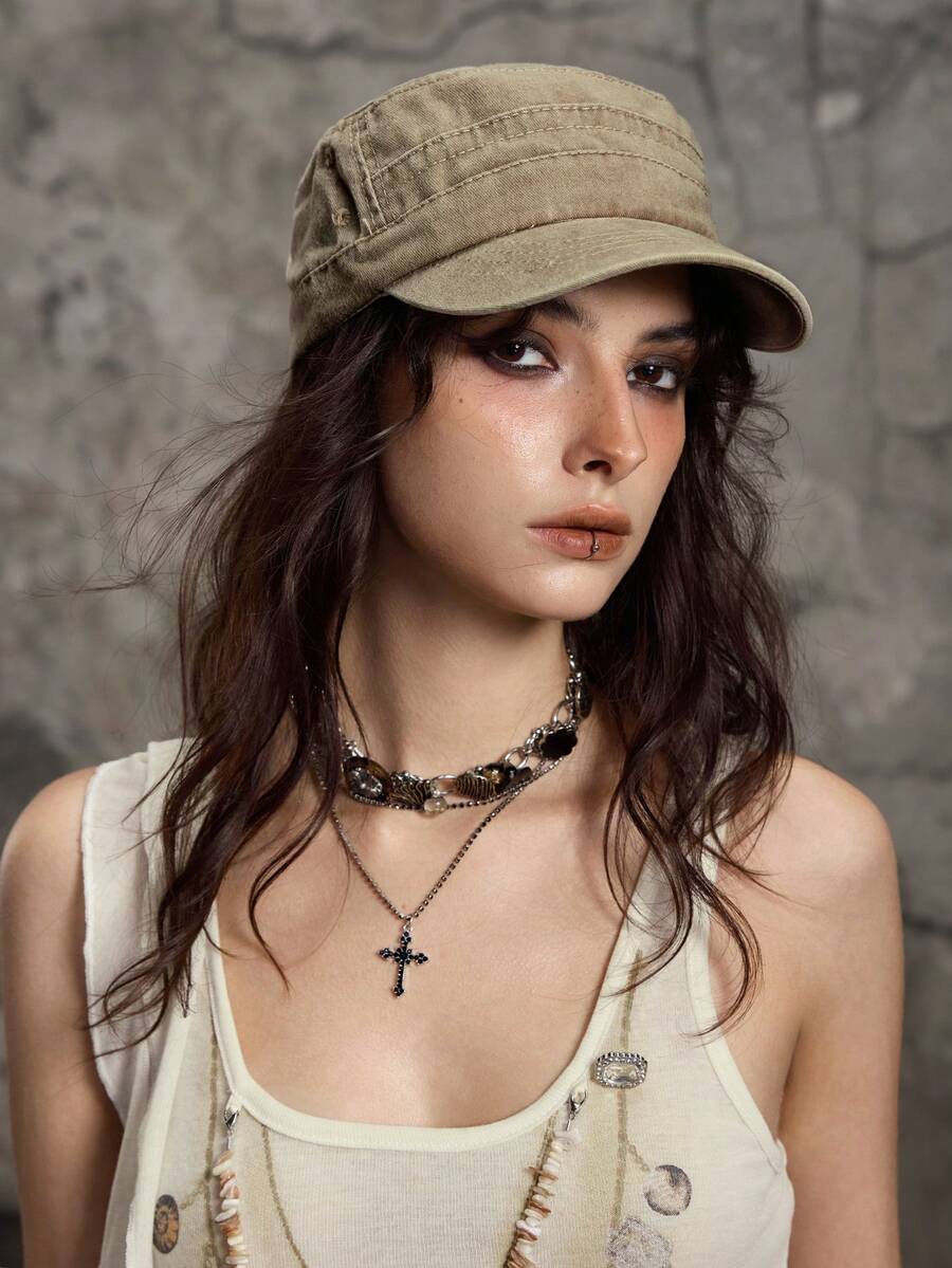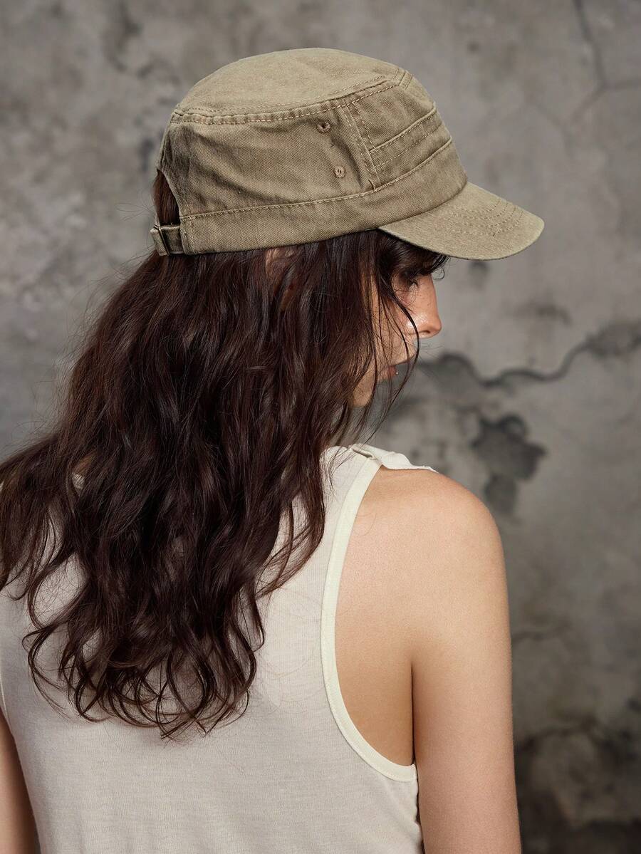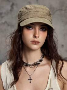 Grunge Punk 1 pieza Sombrero plano de estilo vintage color caqui, sombrero retro desgastado de estilo punk chic, gorra simple ajustable para uso diario