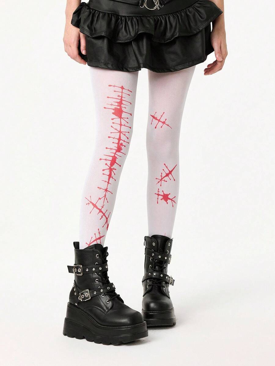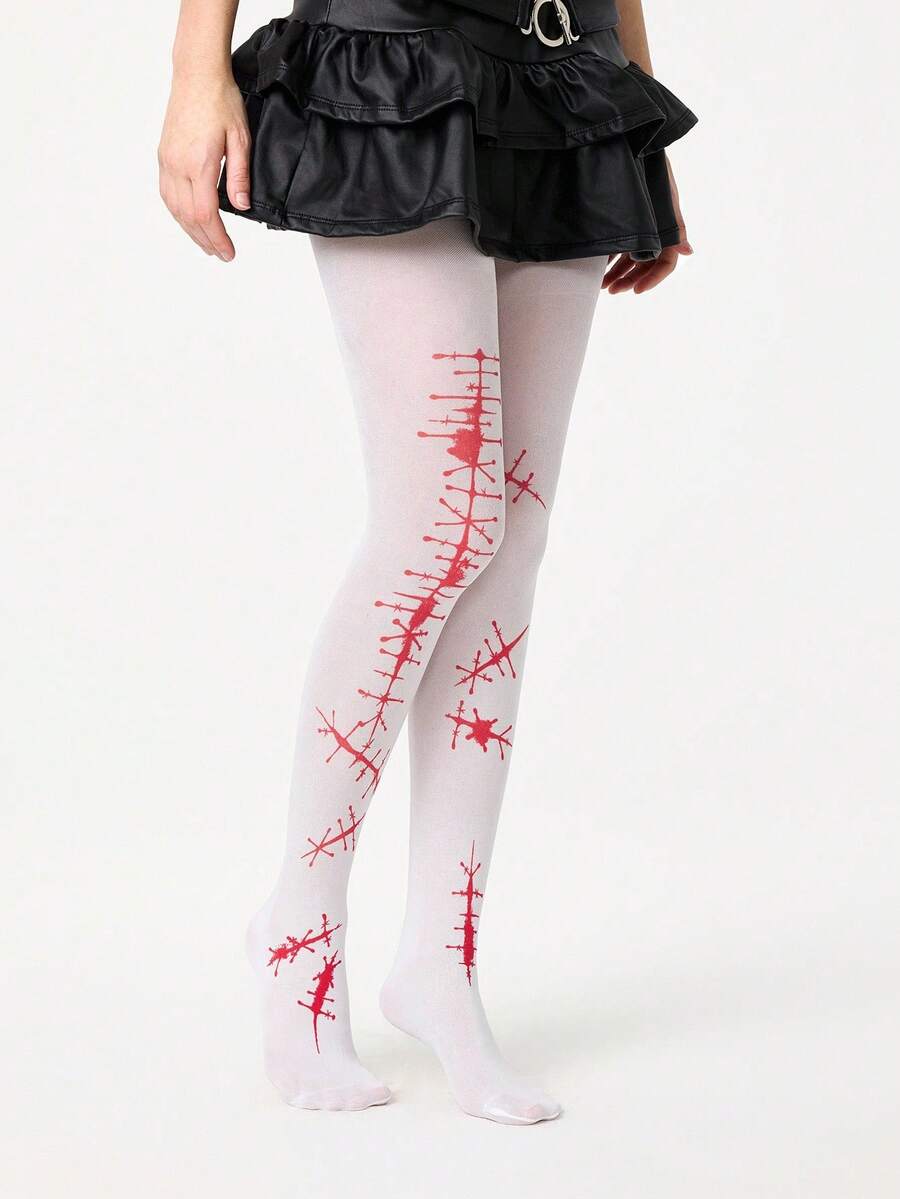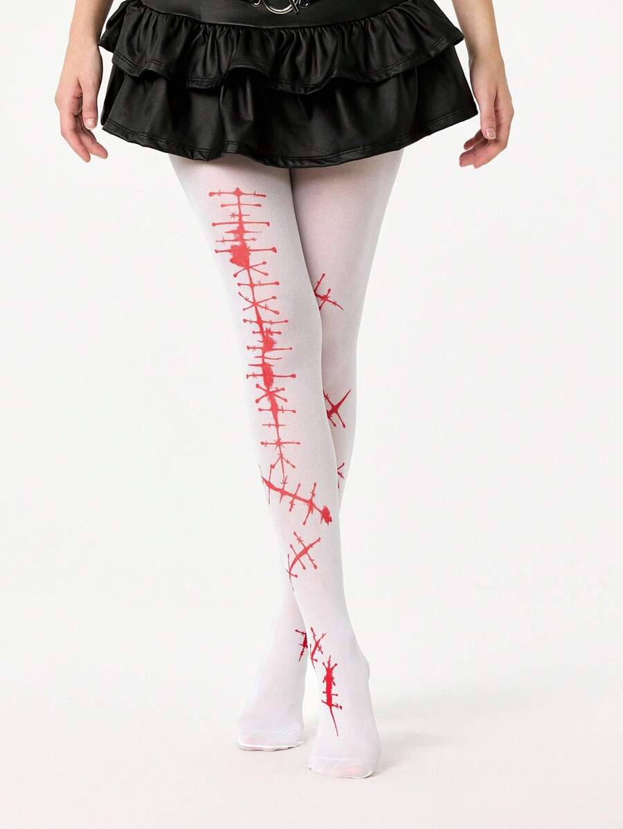 Grunge Punk 1 pieza Medias/Pantimedias/Mallas opacas y asimétricas sensuales para mujer, color blanco