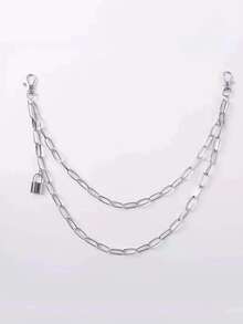 Grunge Punk 1 Pieza Cadena De Pantalón De Doble Capa Para Mujeres Con Cerradura Y Cadena De Cruz De Plata