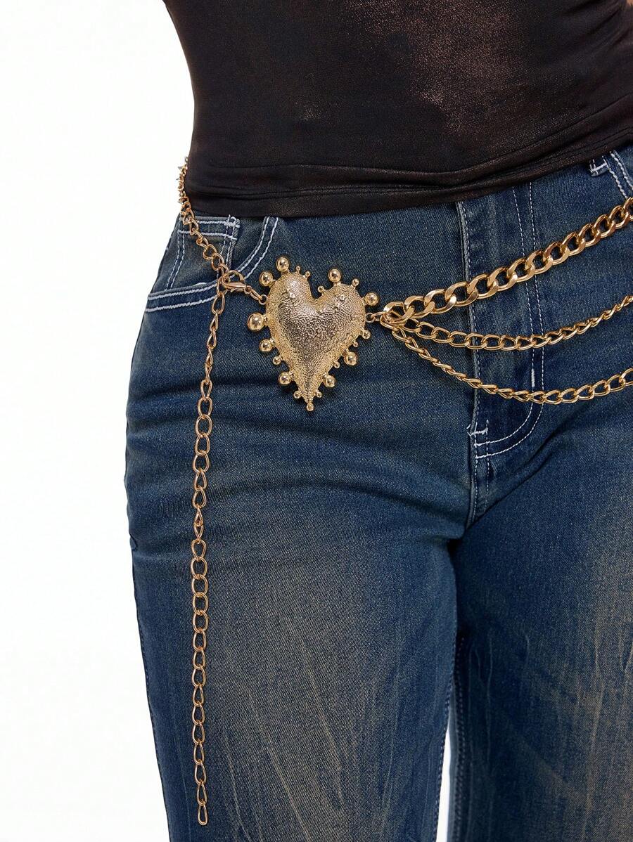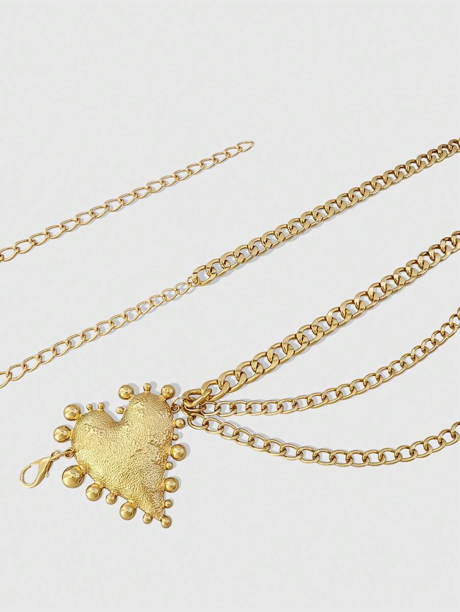 Grunge Punk 1 pieza Cadena para la cintura de mujer con 3 cadenas y decoración de corazón martillado en tono dorado, accesorio versátil para vestidos