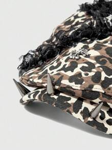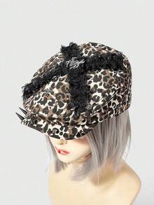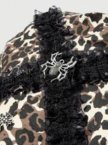 Grunge Punk 1 pieza Estilo Punk Y2K Adorno de cruz de araña de metal para dama, Boina con parche de estampado de leopardo y encaje, Adecuado para viajes, compras y etc., Halloween