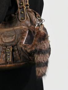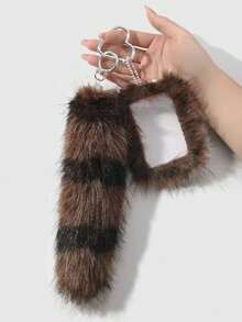 Grunge Punk 1 pieza Llavero con colgante de cola de animal de piel sintética a rayas marrón con estilo retro Y2K elegante y de alta gama, adecuado para uso diario de mujeres/niñas, regalo para vacaciones