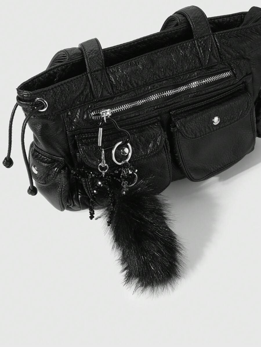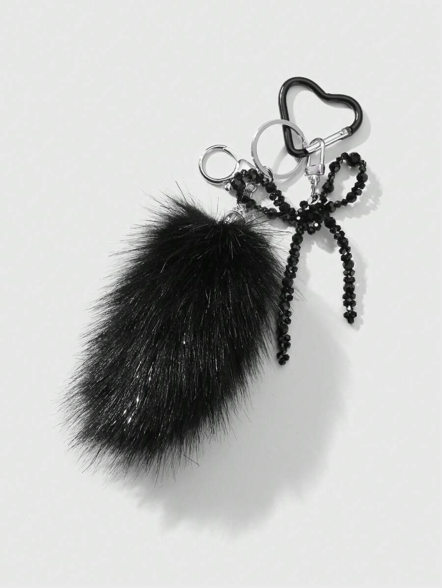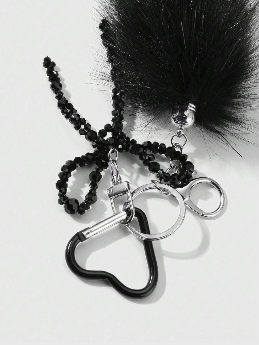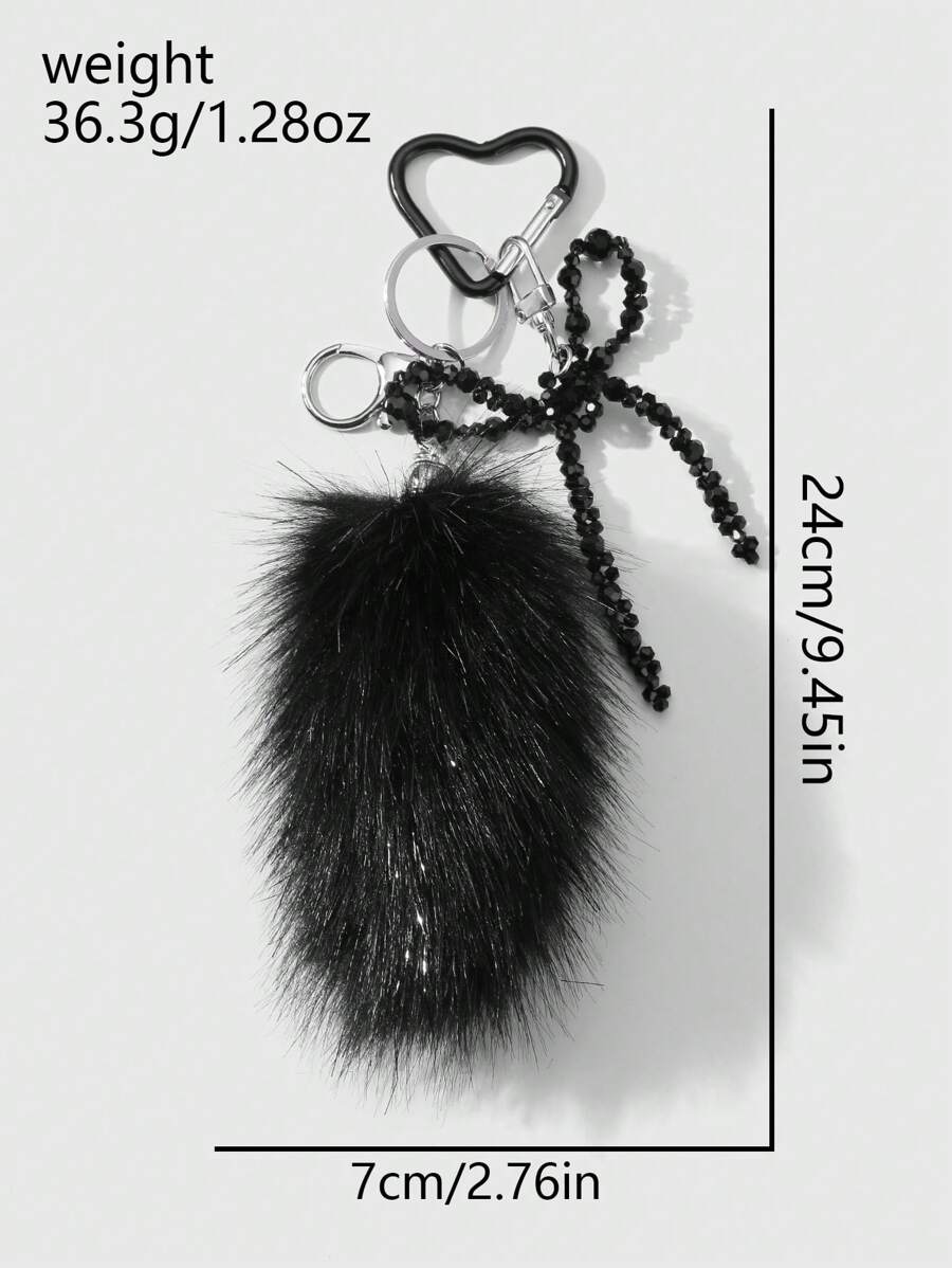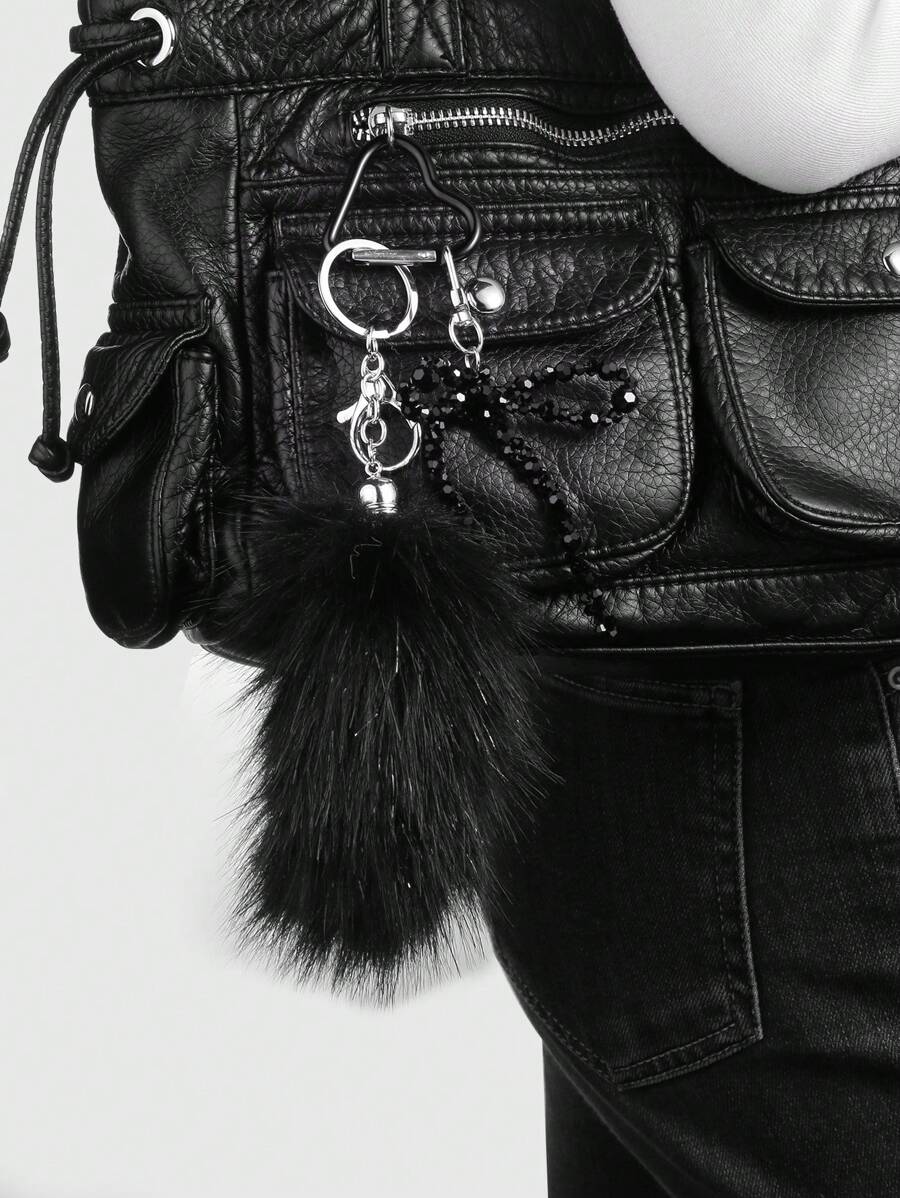Grunge Punk 1 pieza Llavero con cola de piel sintética negra con cristal y cuentas, estilo retro y gótico de lujo hecho a mano, decoración elegante para bolso/accesorio, regalo para mujeres