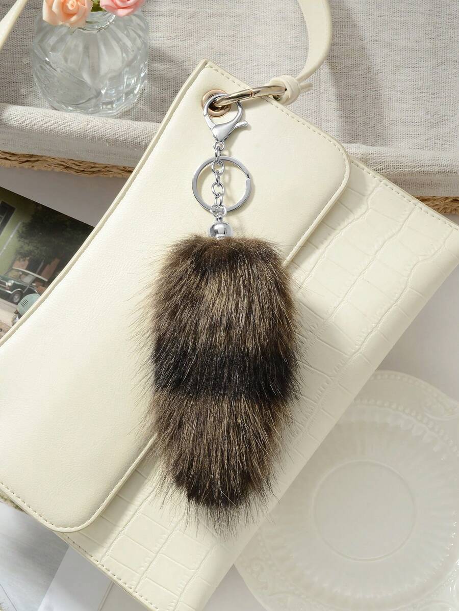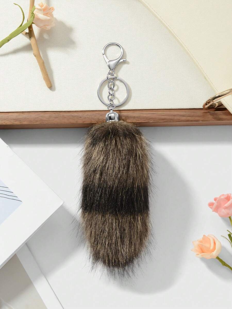 Grunge Punk 1 pieza Elegante y lujoso accesorio de cola de animal de piel sintética a rayas en marrón cálido con estilo vintage Y2K, adecuado para mujeres, uso diario o regalo