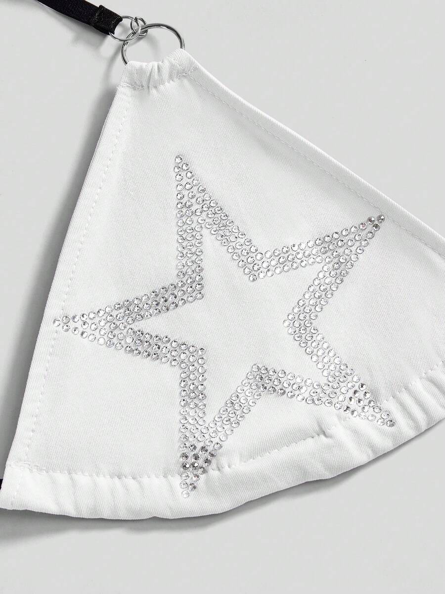 Grunge Punk Top tipo bralette con detalles de estrellas de pedrería, estilo grunge de festival de música de la década de 2000, color rosa claro