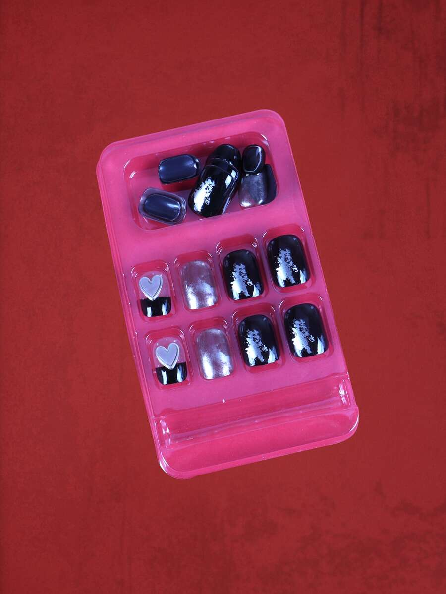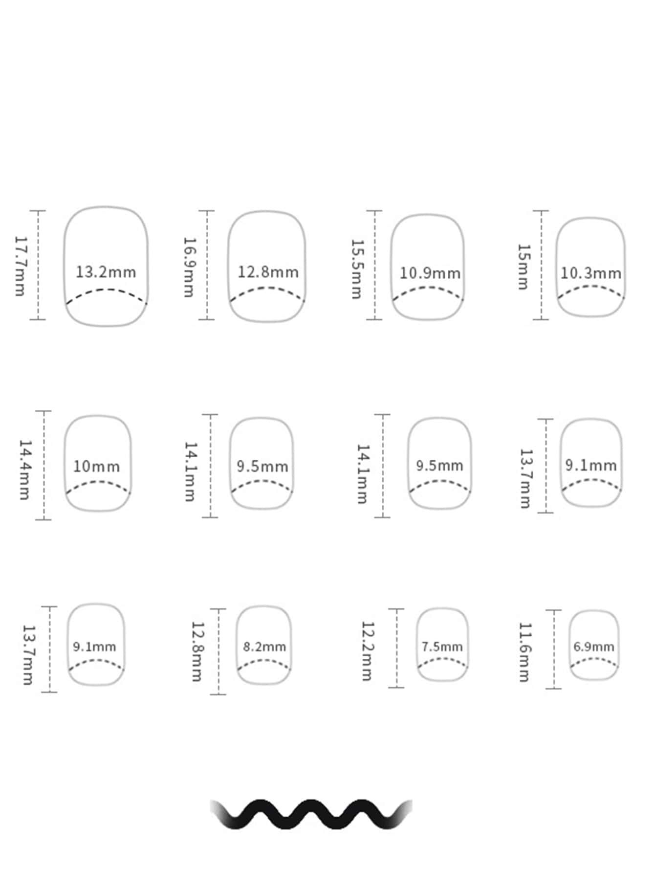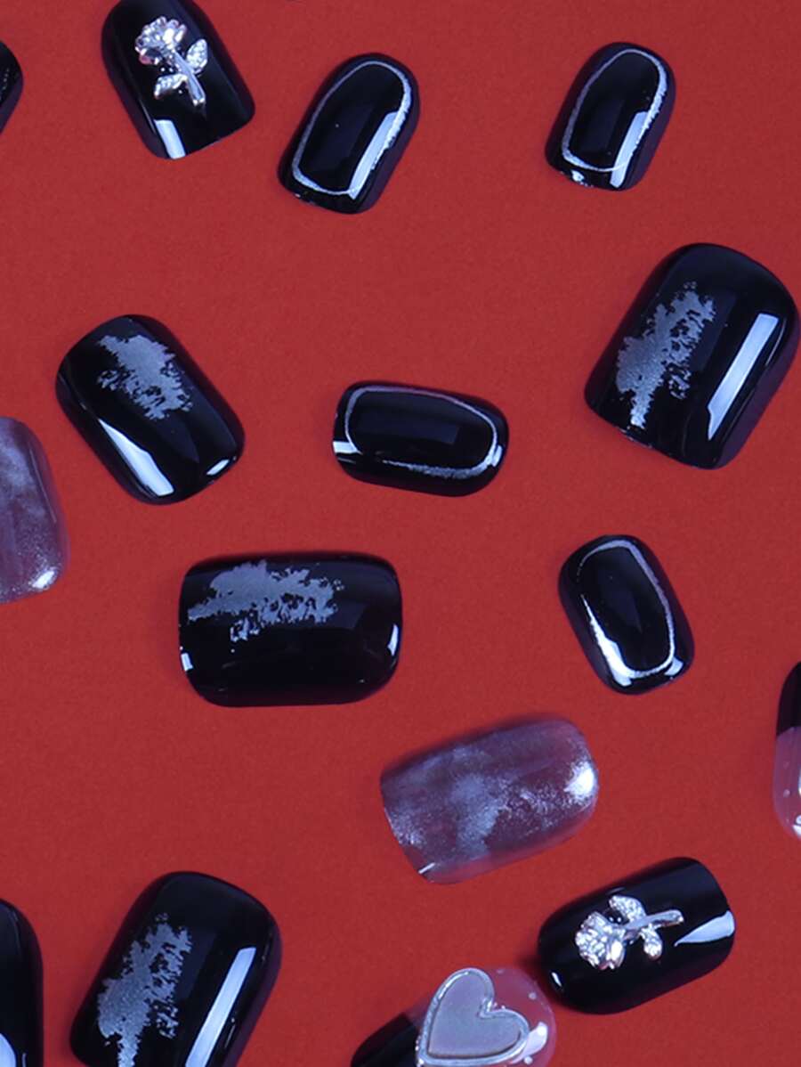 Grunge Punk 24 piezas Uña postiza corto cuadrado con adorno de corazón & 1 hoja cinta