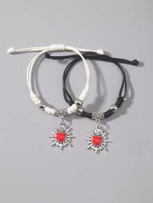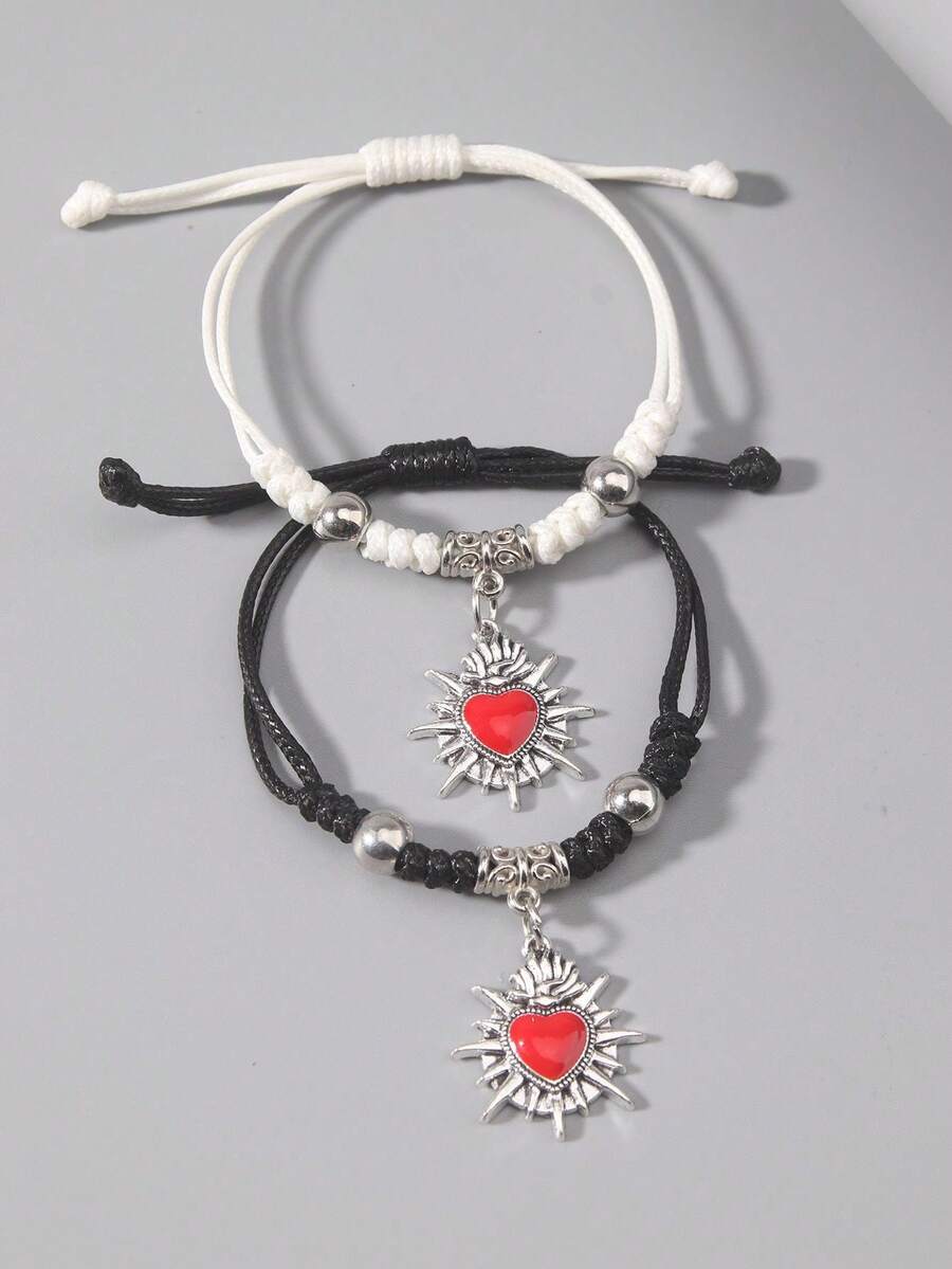 Grunge Punk 2 piezas Pulsera con colgante de corazón con picos estilo gótico, regalo perfecto para amigos y familiares