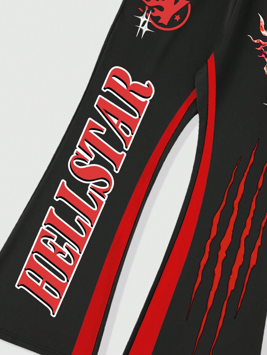 Grunge Punk 2 piezas Conjunto de sudadera con capucha de manga larga y pantalón de chándal con estampado de lema y calavera casual para hombre, otoño e invierno