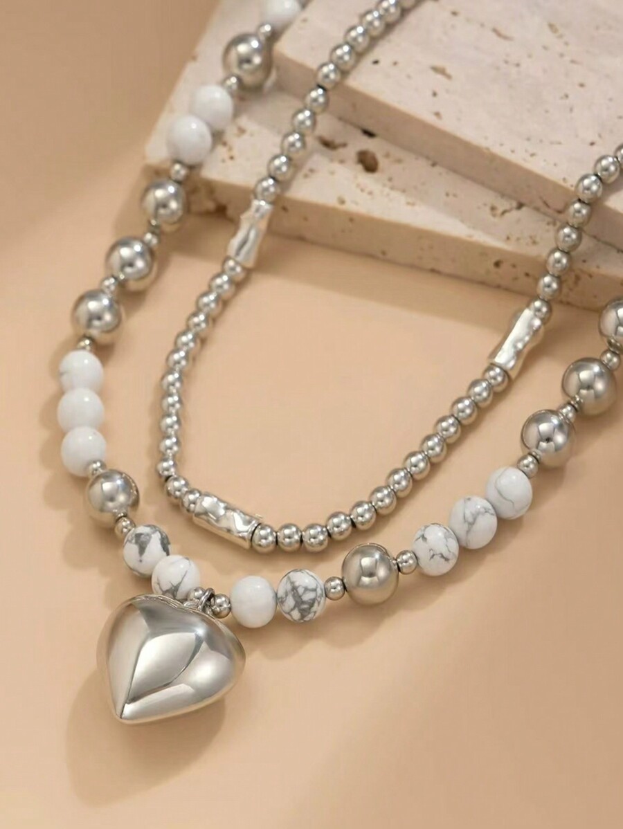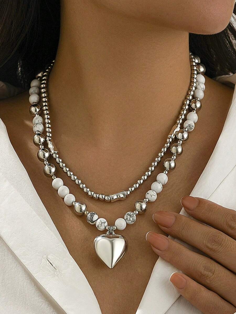 Grunge Punk Set de 2 collares con colgante minimalista de corazón de metal estilo hip-hop para mujeres
