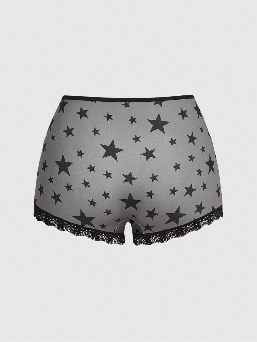 Grunge Punk 3 Piezas De Conjuntos De Ropa Interior Para Mujeres En Panty Estilo Boyshorts Con Diseño De Estrellas Punks Negras, Calaveras Y Con Fuente Gótica